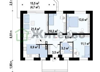 Жилая: 51 м2