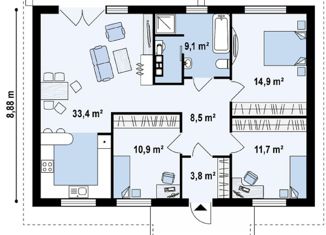 Общая площадь: 88 м2