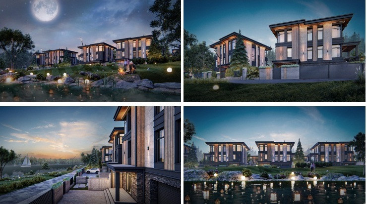 Тип 3. Расширенный вариант четвертого типа домов, на основном участке таких домов 10. Двухэтажный индивидуальный жилой дом площадью 160 м2. На первом этаже вход в котельную через гардероб из прихожей, далее вход в общую зону кухни-гостиной, с кухней совмещена кладовая. Также на первом этаже разместилась мастер-спальня с собственным гардеробом и ванной. На втором этаже три спальни, общая ванная и арт-рум.