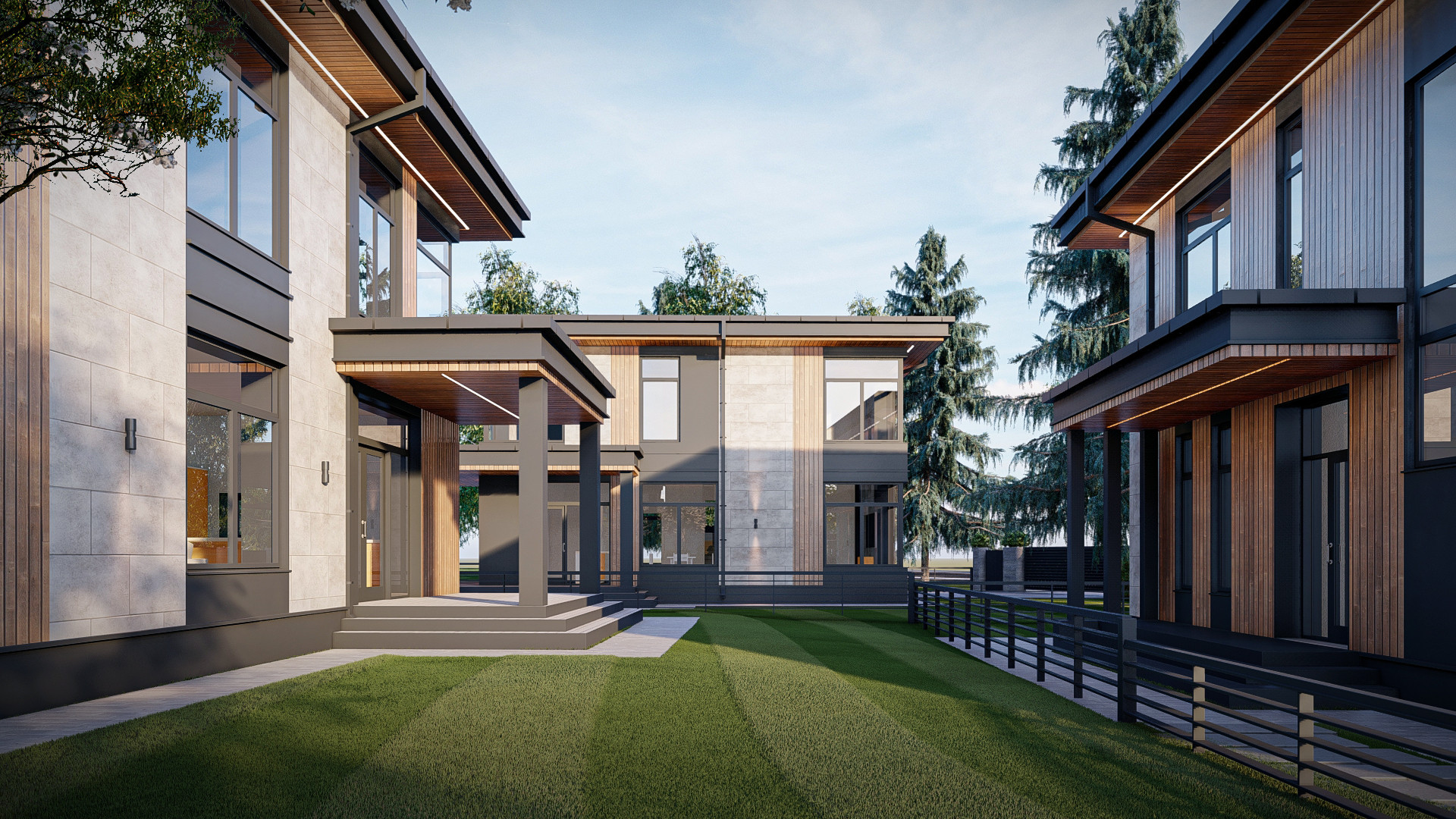 Современная архитектура прекрасно вписывается в окружающий природный ландшафт и создает уютную атмосферу.