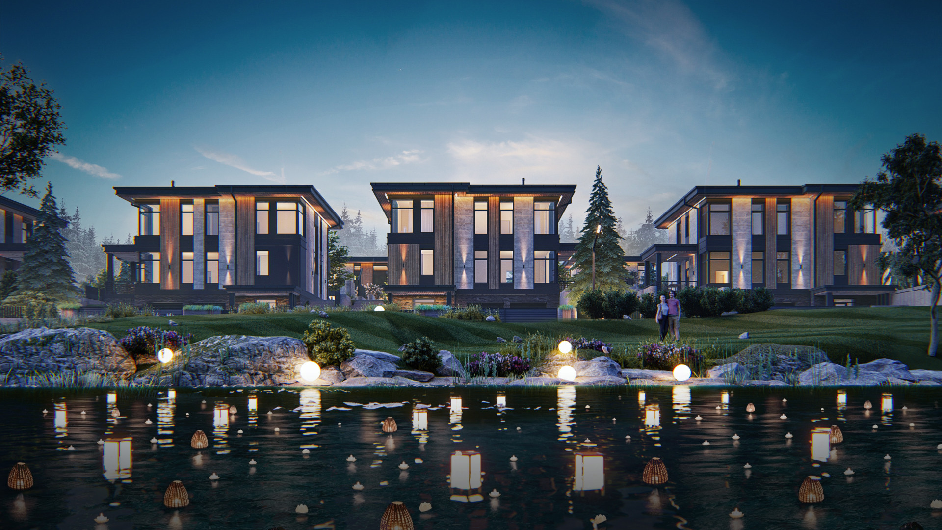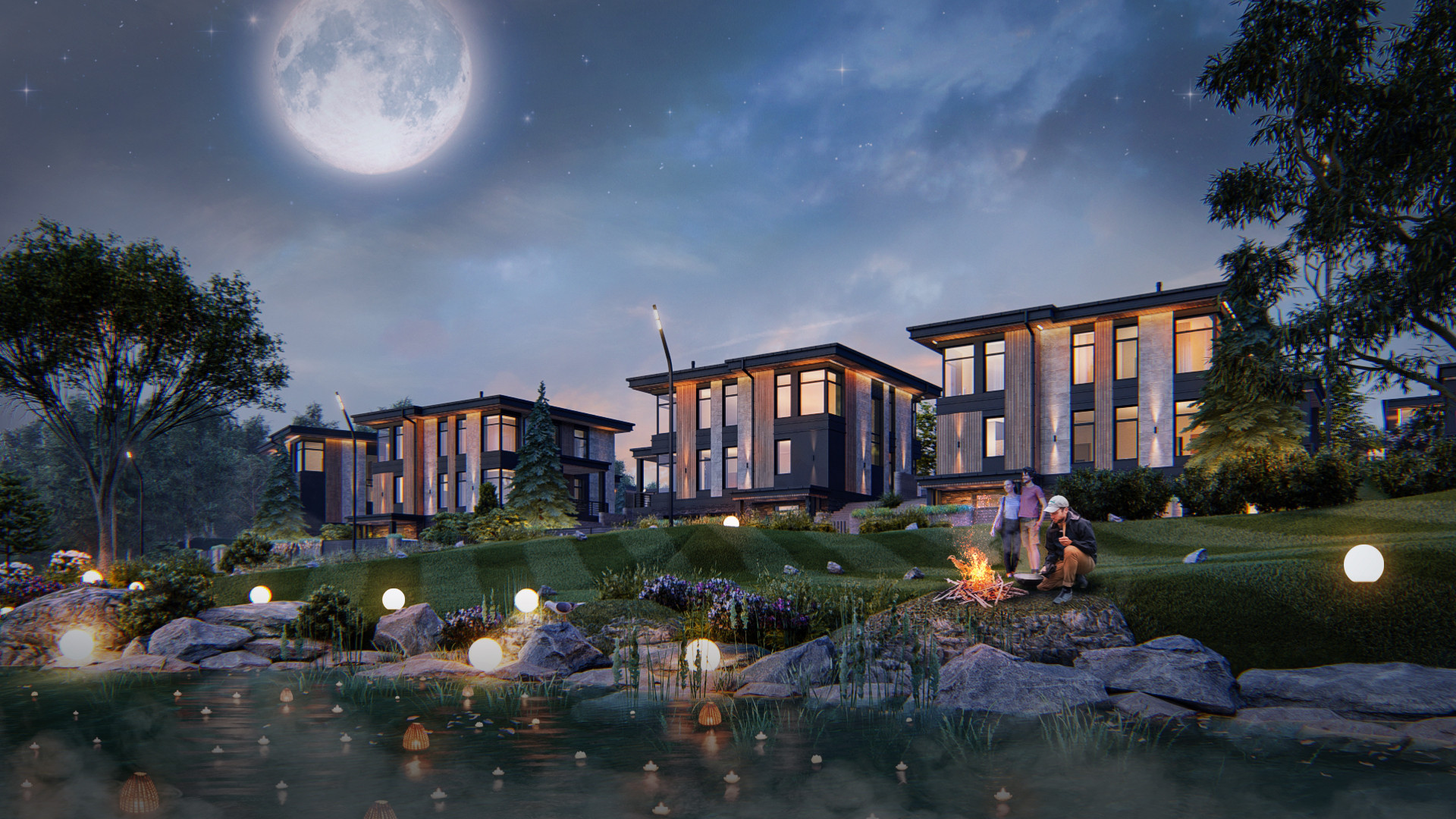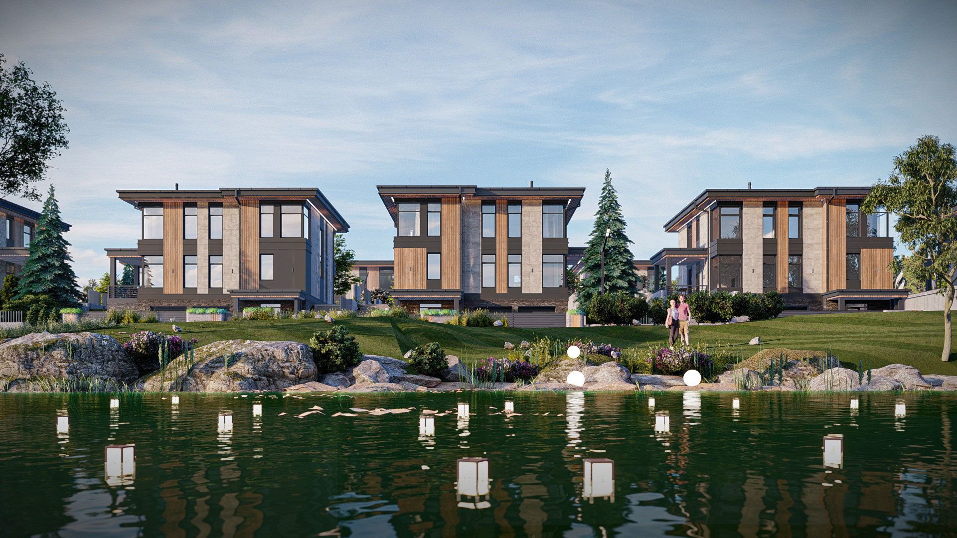 В непосредственной близости от загородного квартала расположен лес и пруд.