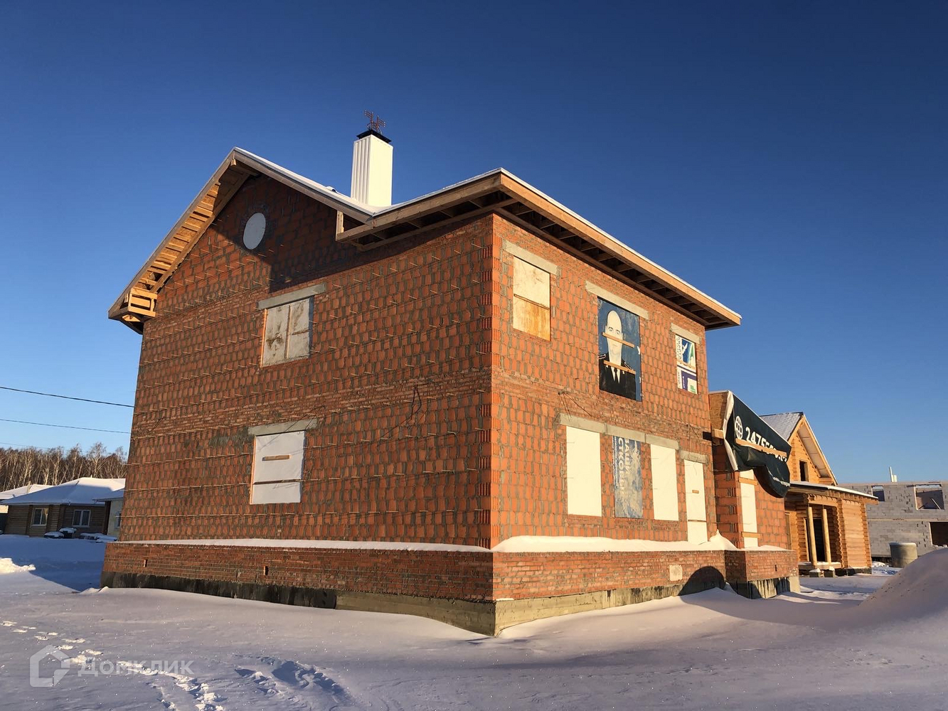 Продается дом  для большой семьи в хорошем месте - п.Родной. Охраняемая территория, на территории посёлка есть карьеры, где можно летом купаться. Возведена коробка, закрыта кровля. Подготовлен архитектурный проект. Дом на одном фундаменте с баней и гаражом. Подвал по всей площади дома. Материал стен кирпич, без облицовки. 1 этаж: гараж, баня, гостиная, тёплая терраса, кухня, с/у. 2 этаж: 3 спальни, две из них с гардеробными, прачечная и большой с/у. Дом строили сами из качественных материалов, имеются фото по каждому этапу строительства. Пробурена скважина, проложено водоотведение до септика. Строили для себя - планировали жить со старшими детьми.