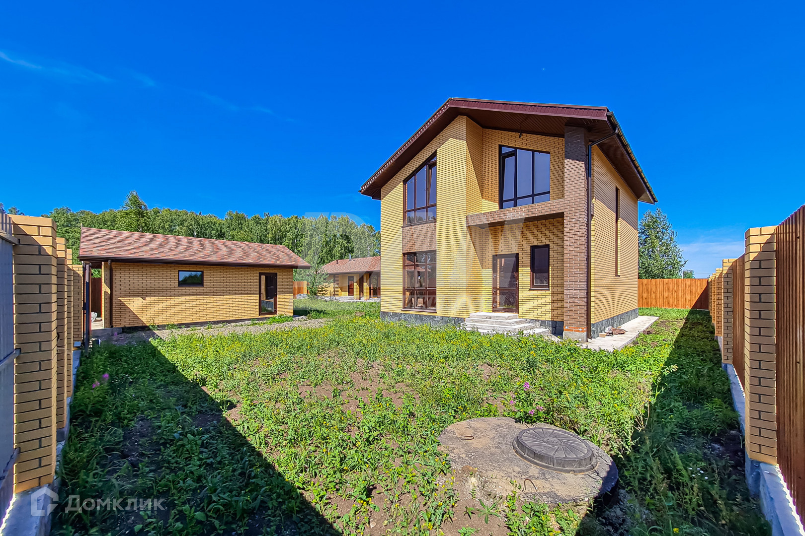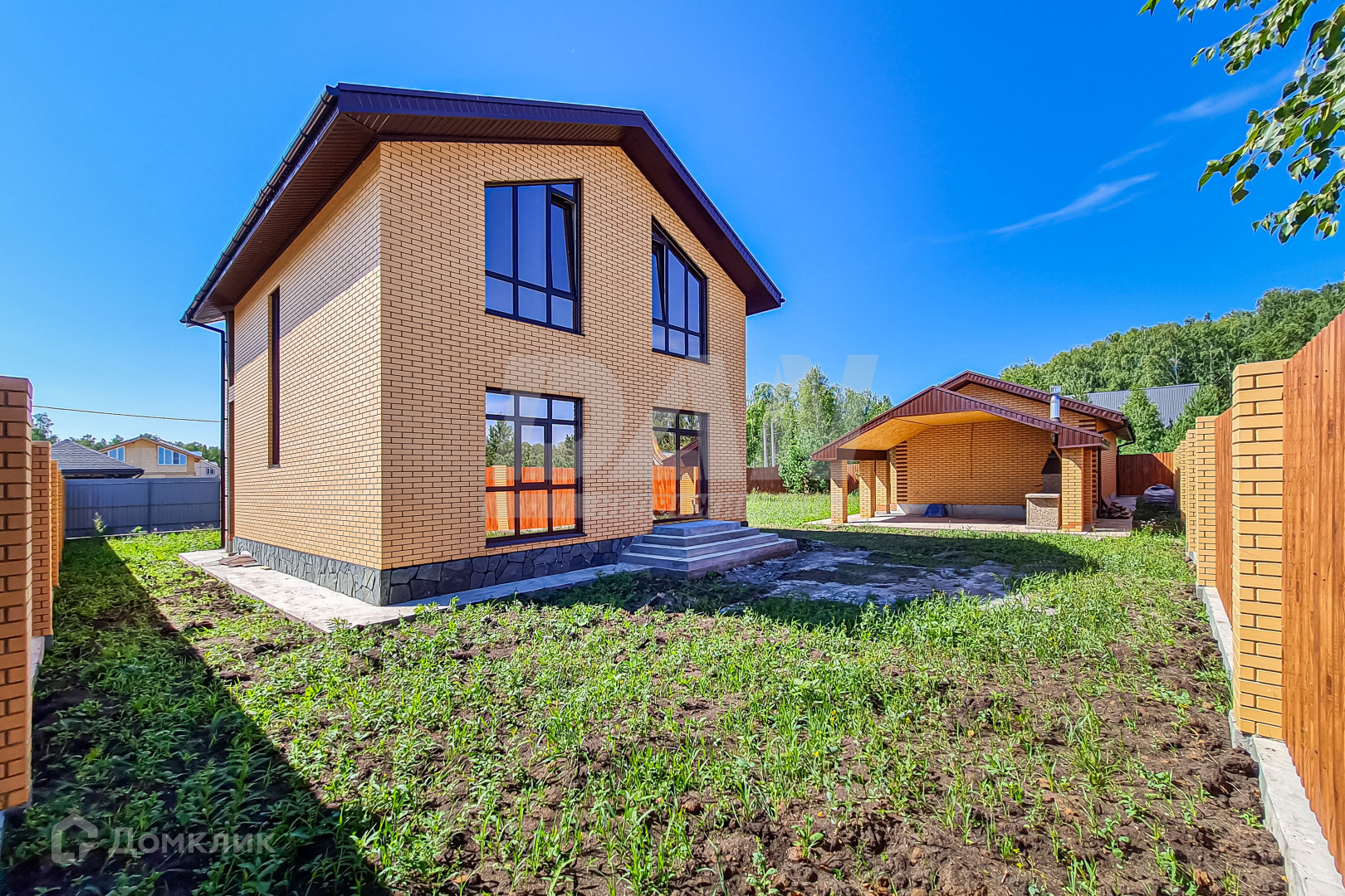 Дом 2021 года постройки выполнен из блоков и обложен кирпичом.