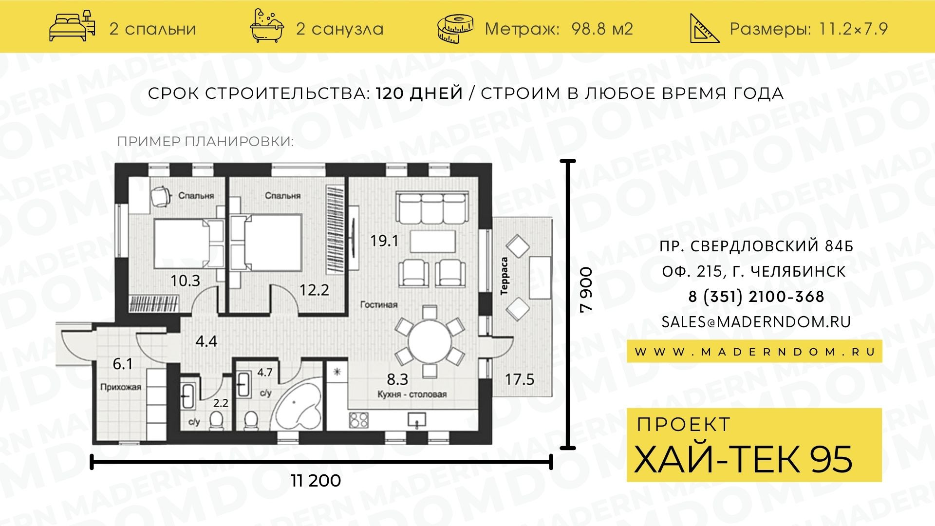 - Размеры 7,9*11,5 м.