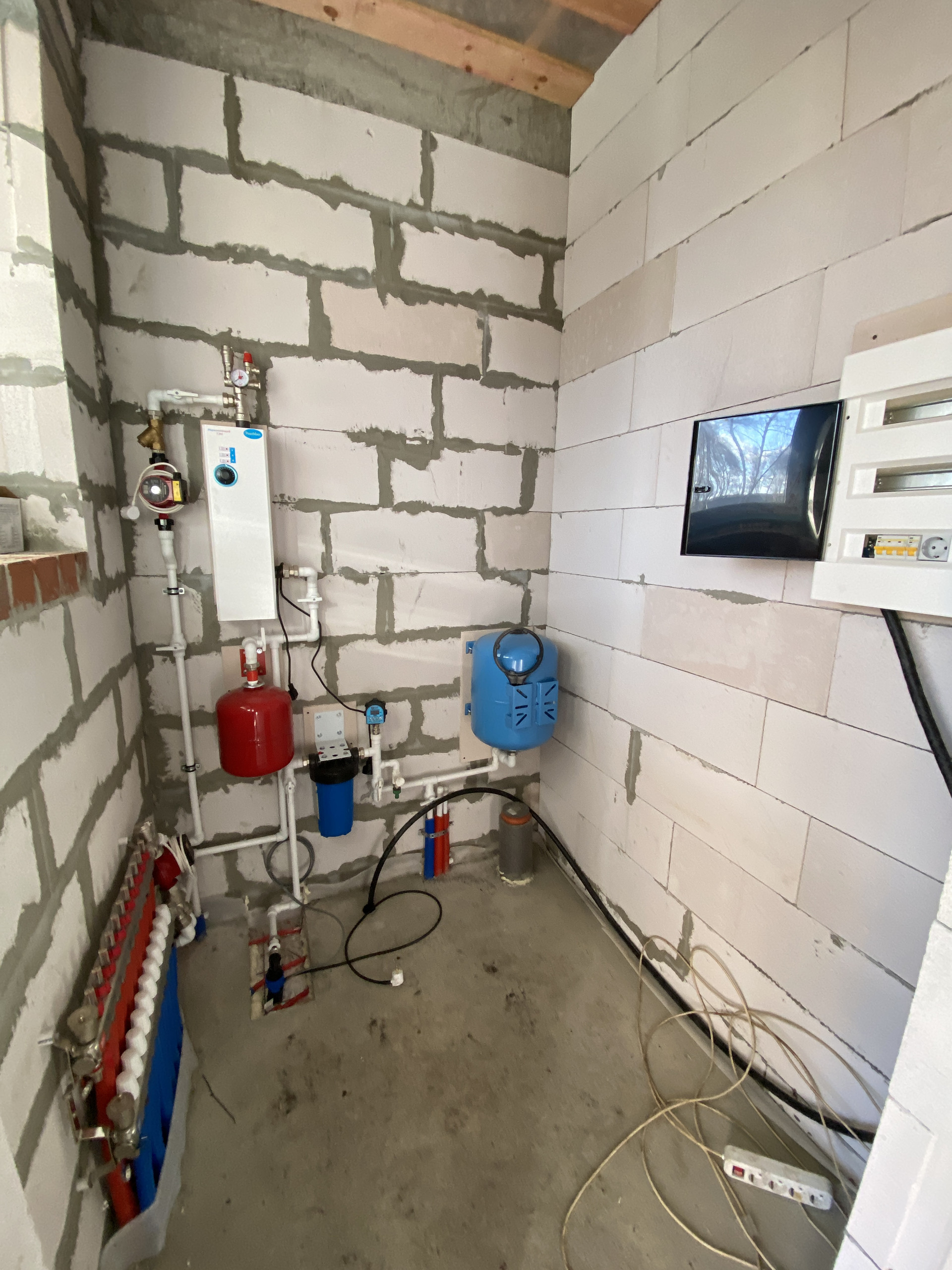- водоснабжение заведено в дом подводка воды ко всем мокрым точкам (скважина глубина 40м, установлен глубинный насос);