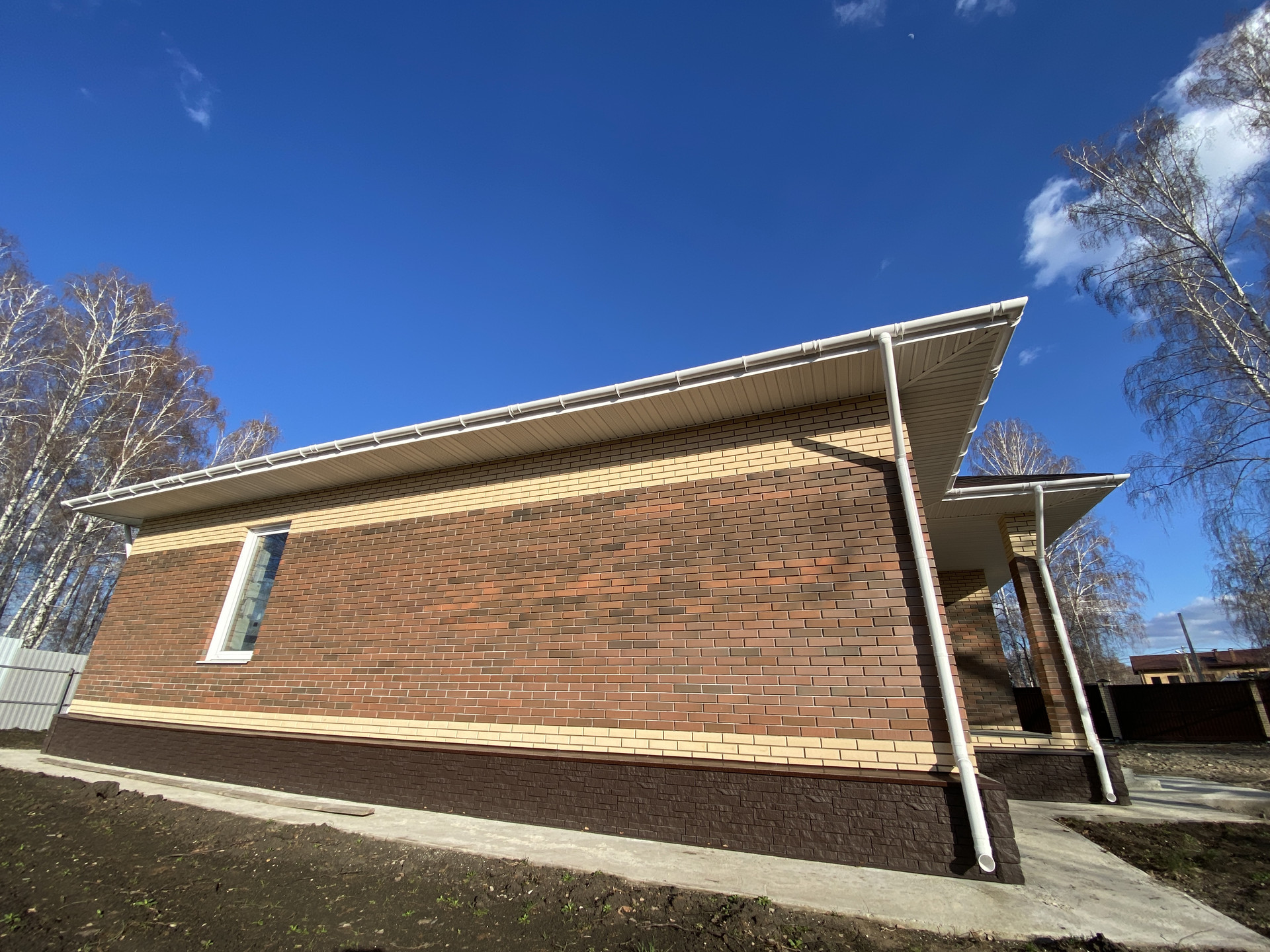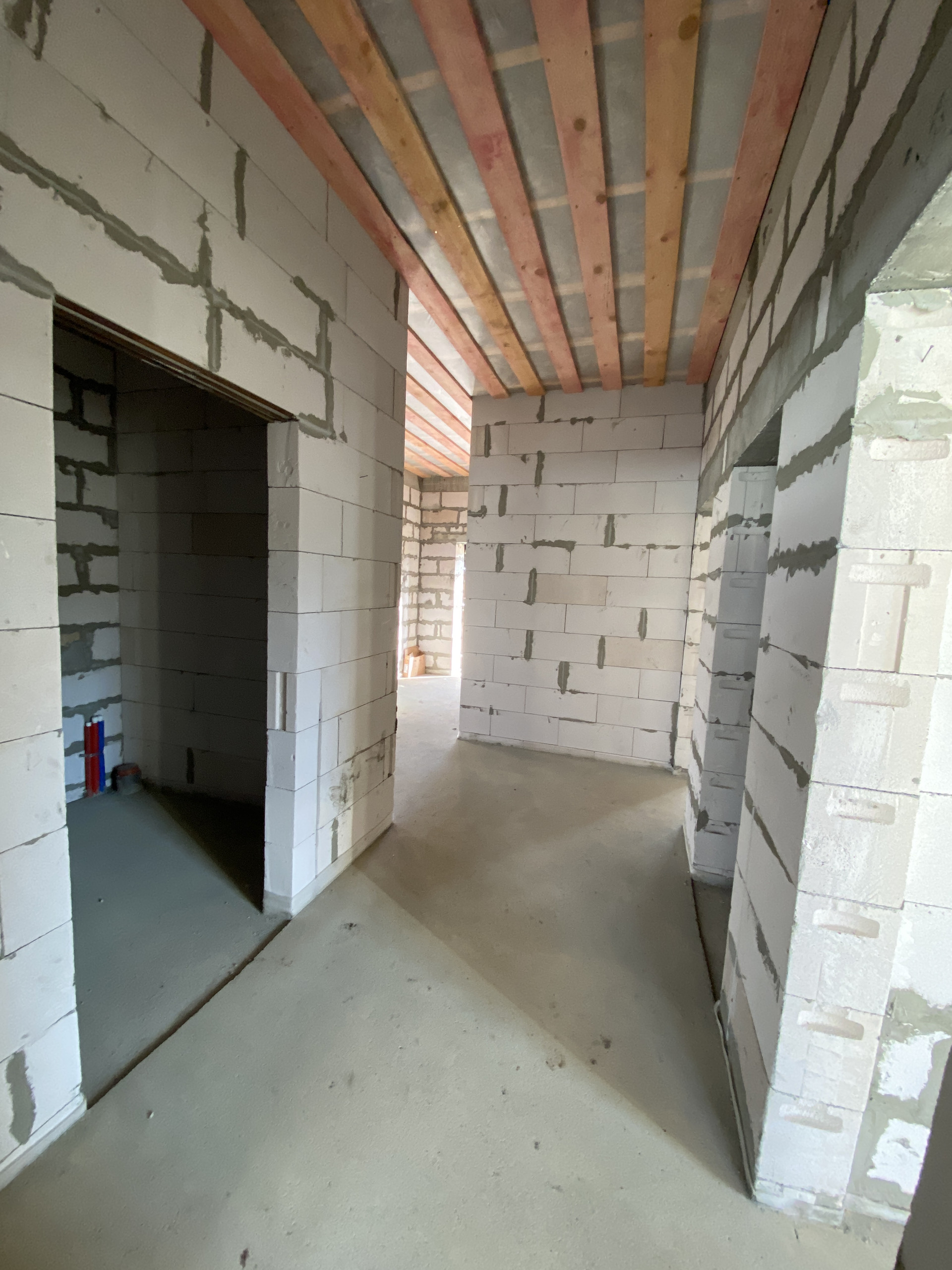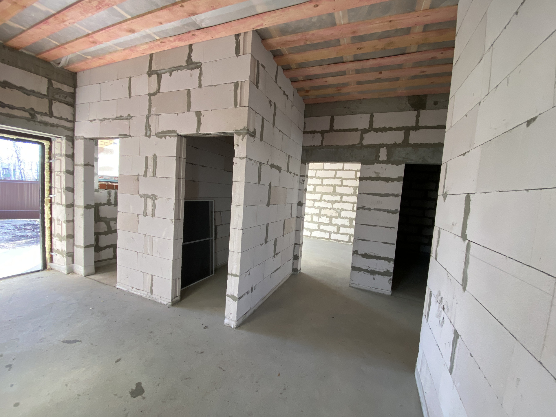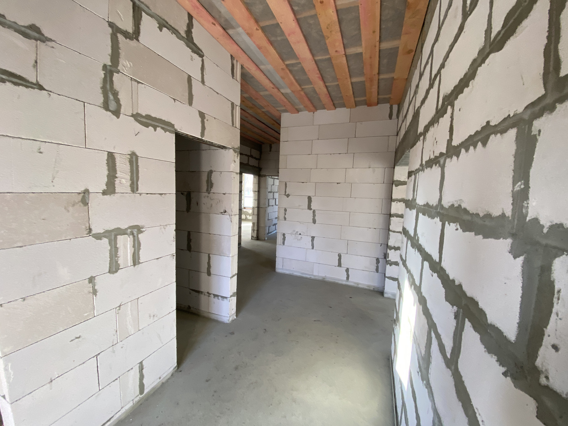- стены: наружные выполнены из газоблока «ИНСИ» толщиной 400мм (с армирующими поясами) + облицовка кирпичом;