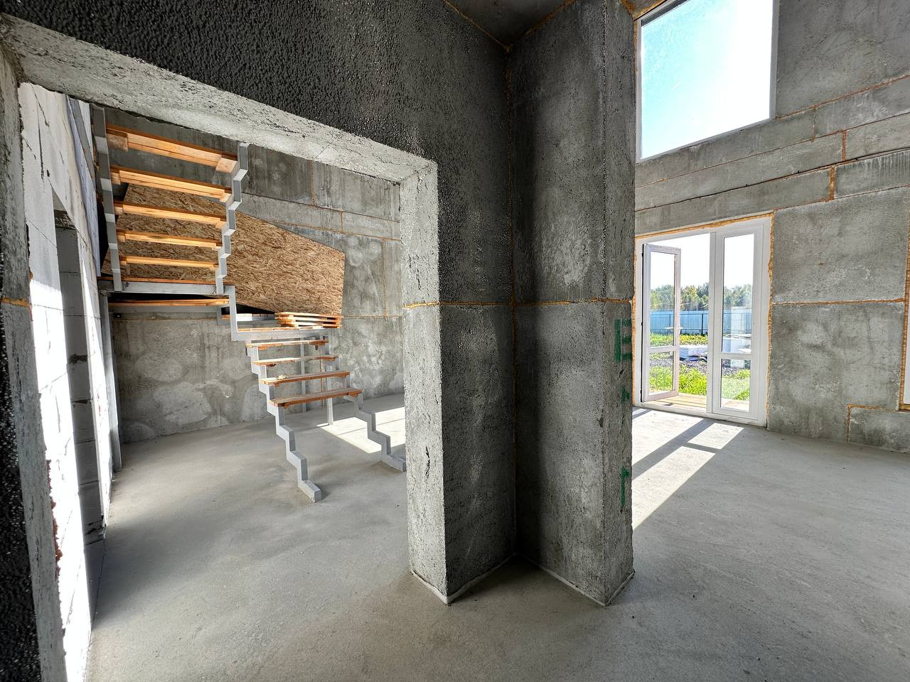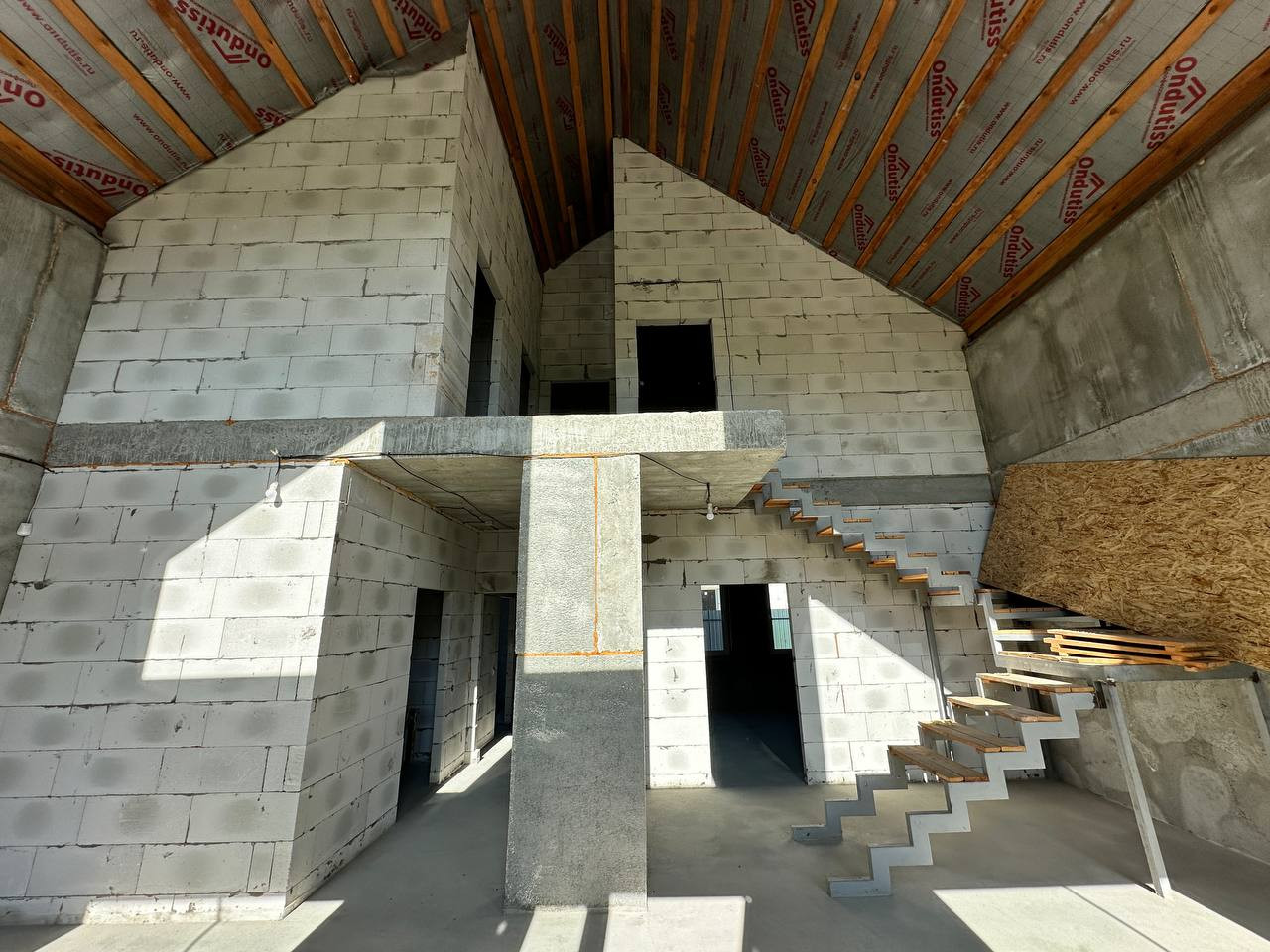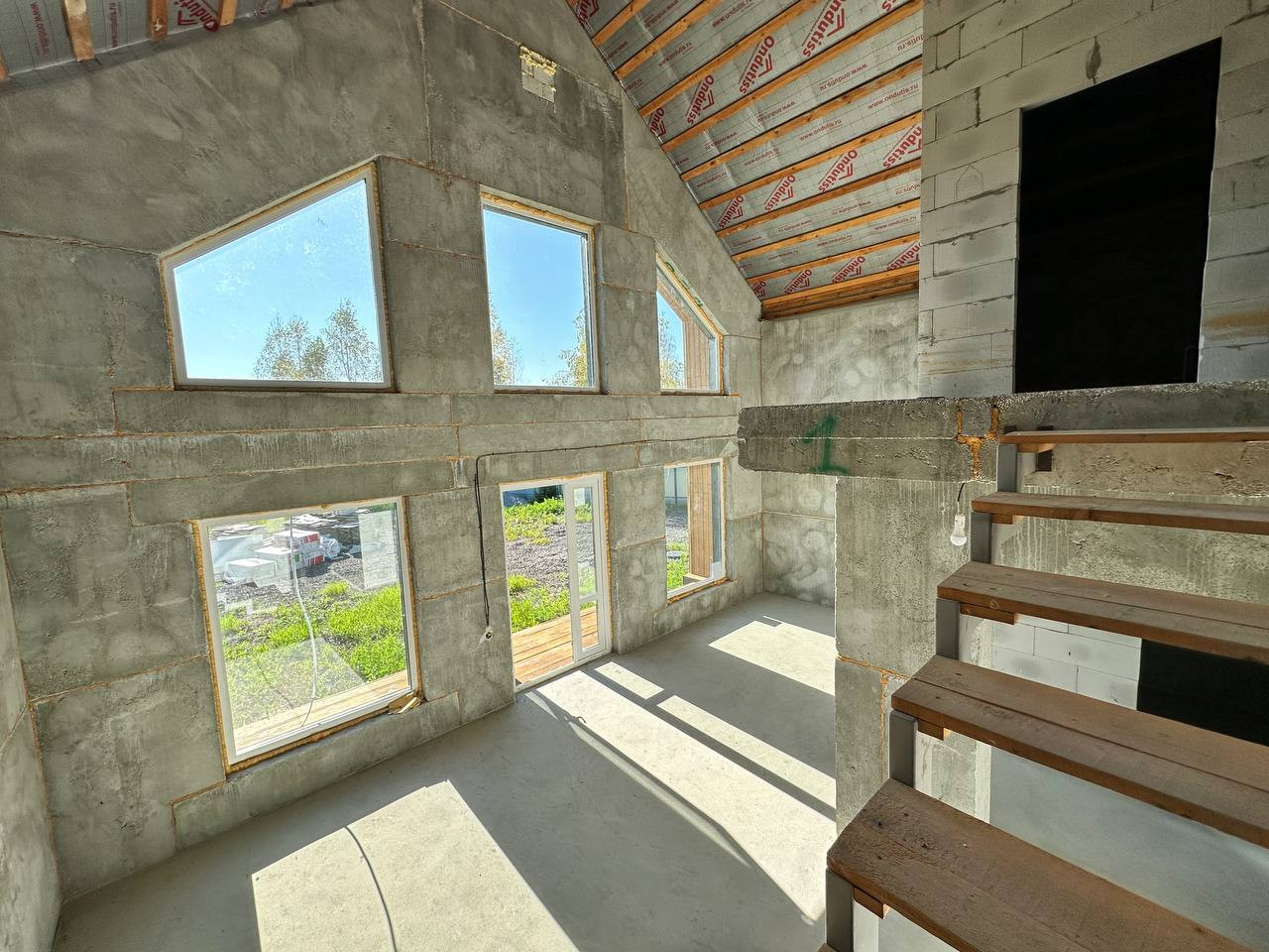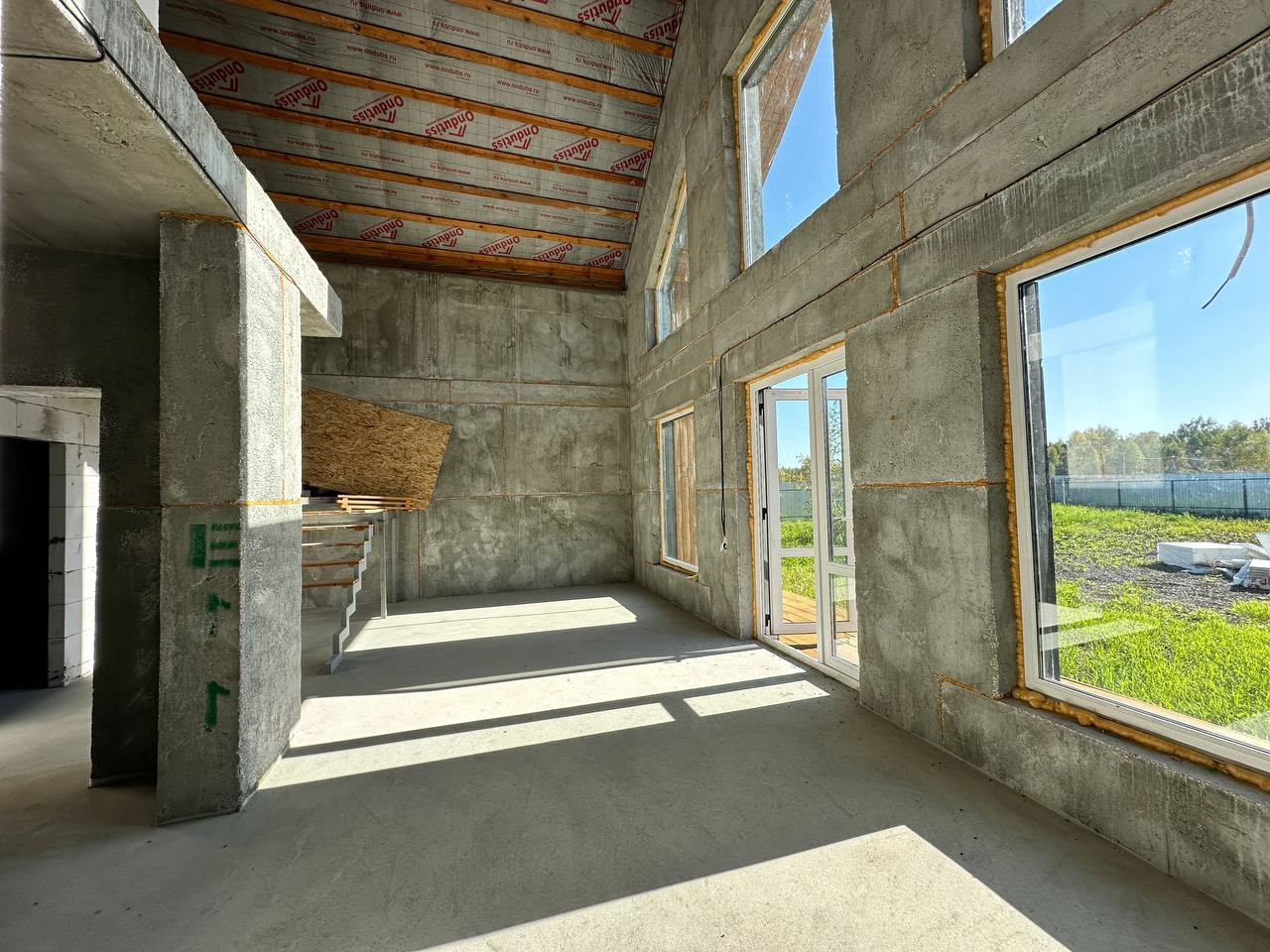 На данном этапе строительства дом предлагается с подготовительной строительной отделкой. Лестница металлическая на второй этаж под чистовую отделку. Электричество в дом проведено, разводка по дому, подсветка в ночное время фасадов. Скважина с питьевой водой глубиной 39 метров заведена в дом. Септик, коммуникации заведены в дом, выполнена полная подготовка в санузлах. Дом остеклен дорогим оконным профилем с энергосберегающим стеклопакетом.