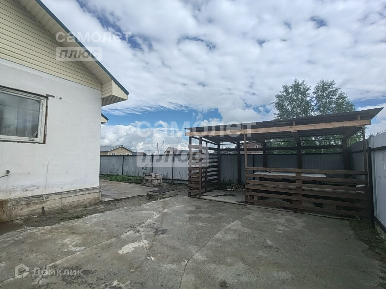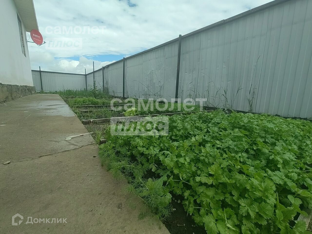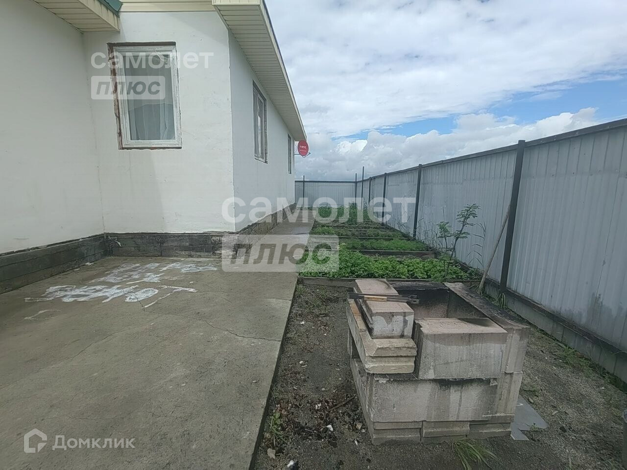 Участок 7 соток вдали от шума и пыли дорог. По периметру установлен забор из профнастила. Через 300 метров расположен парк. Перед домом большая вымощенная площадка, удобная парковка для нескольких автомобилей.