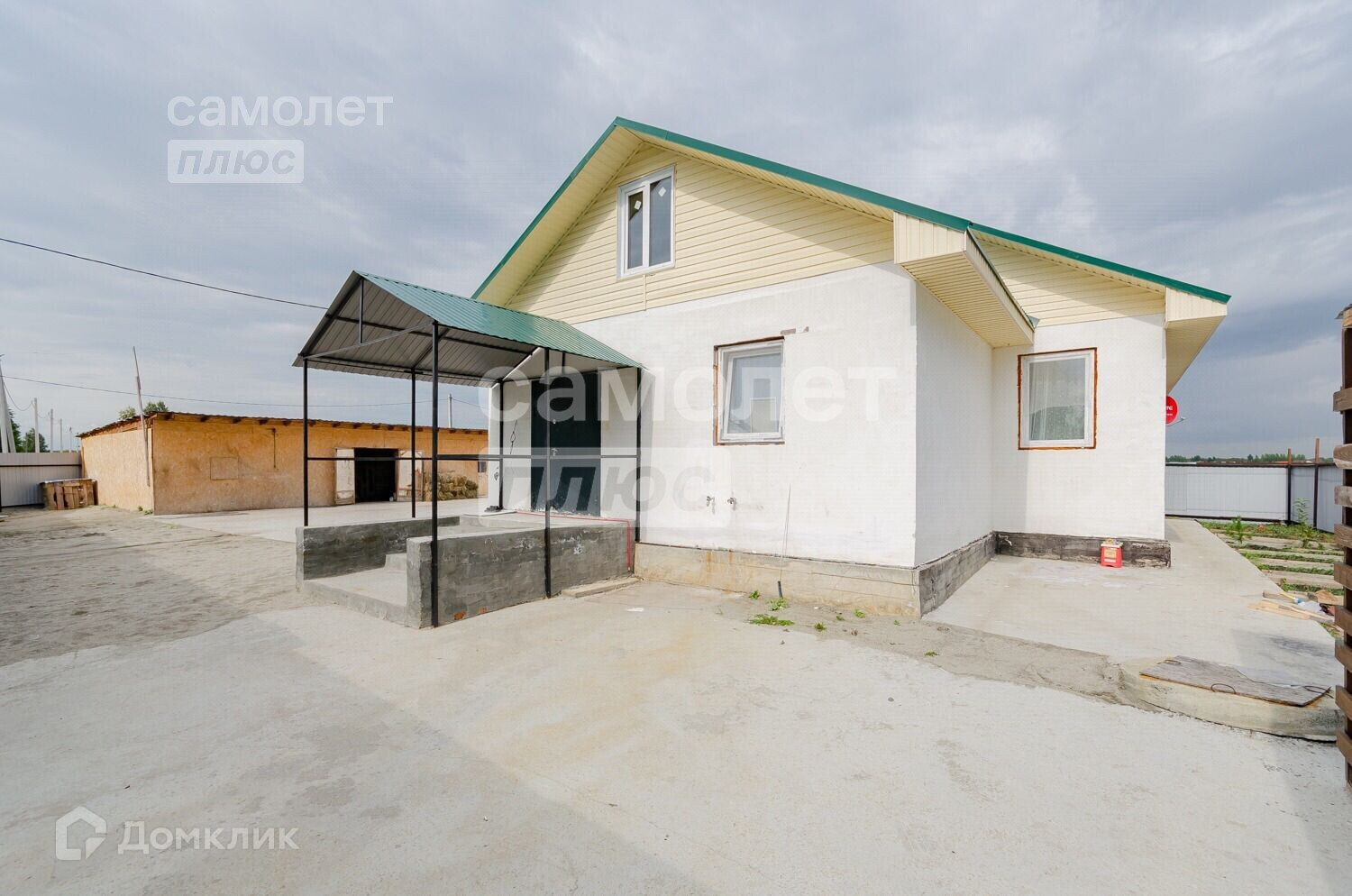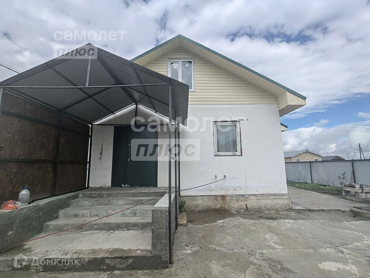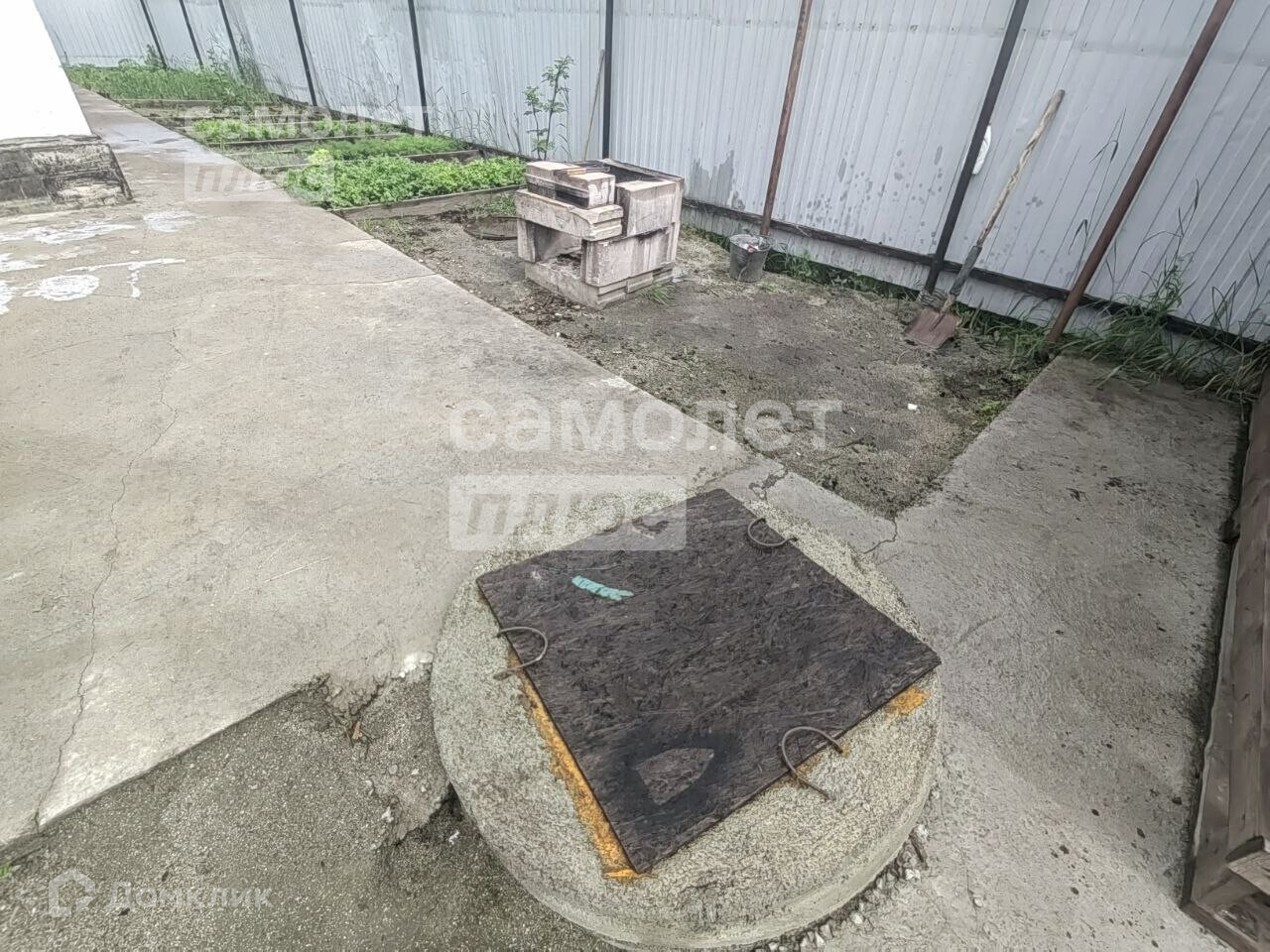 Участок 7 соток вдали от шума и пыли дорог. По периметру установлен забор из профнастила. Через 300 метров расположен парк. Перед домом большая вымощенная площадка, удобная парковка для нескольких автомобилей.