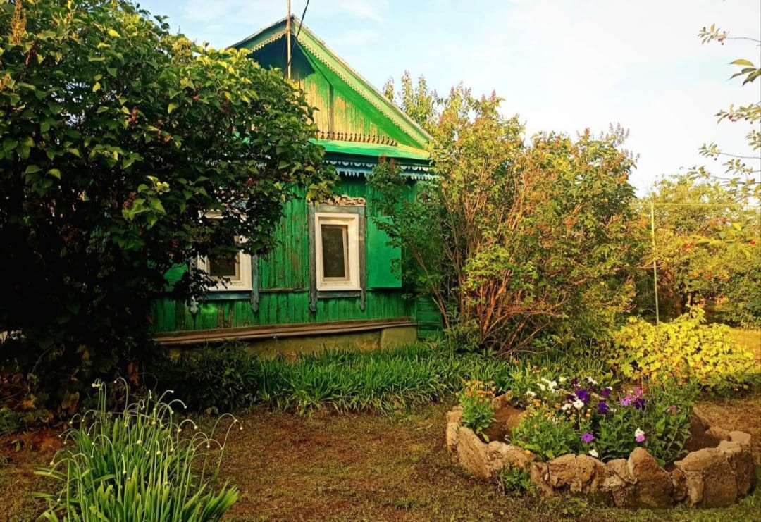 Земельный участок ровный и ухоженный, есть детская игровая площадка. Деревья - яблони, абрикосы, груши, вишни. Есть виноград. Кустарники - чёрная и красная смородина, крыжовник, а также малина, клубника, земляника. Многолетние цветы - розы, лилии, гортензии, пионы, ирисы и др.