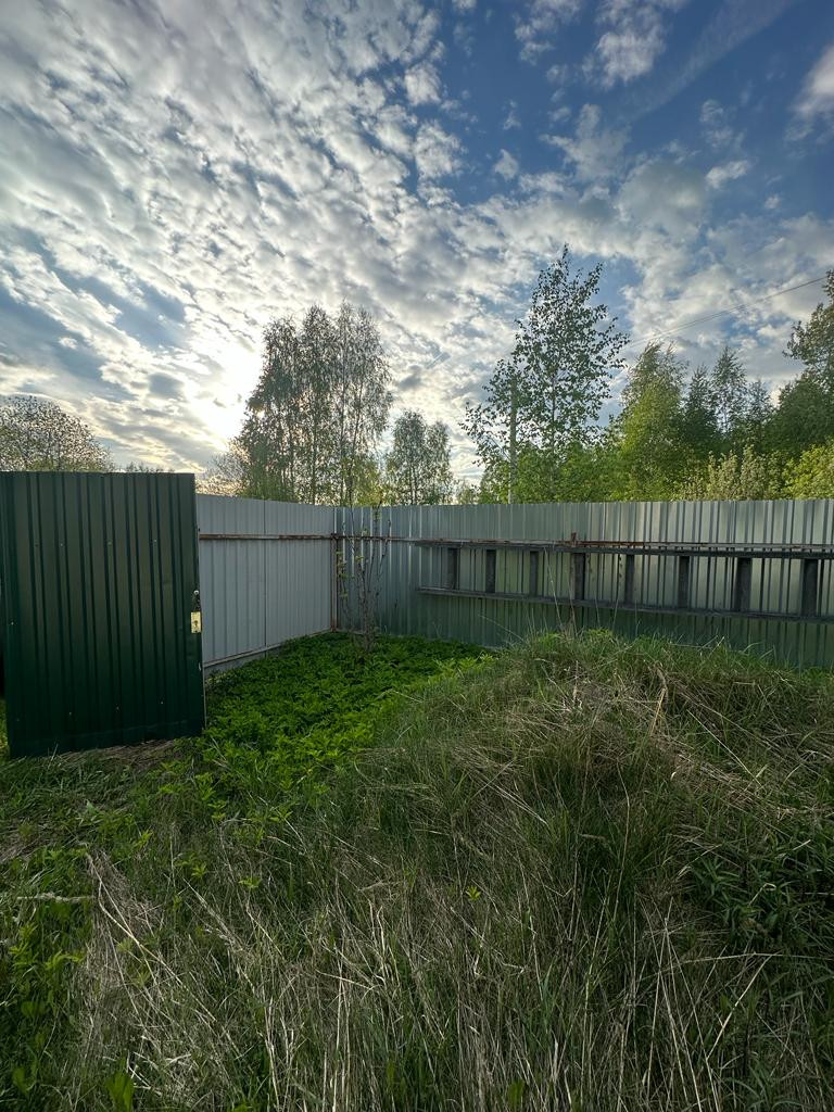 Земельный участок, назначение ЛПХ, 12 соток. По периметру огорожен забором из профлиста. Межевание проведено.