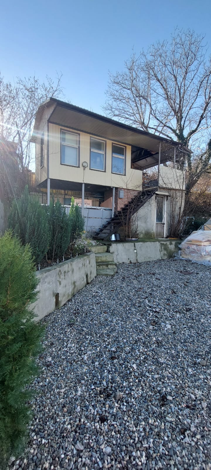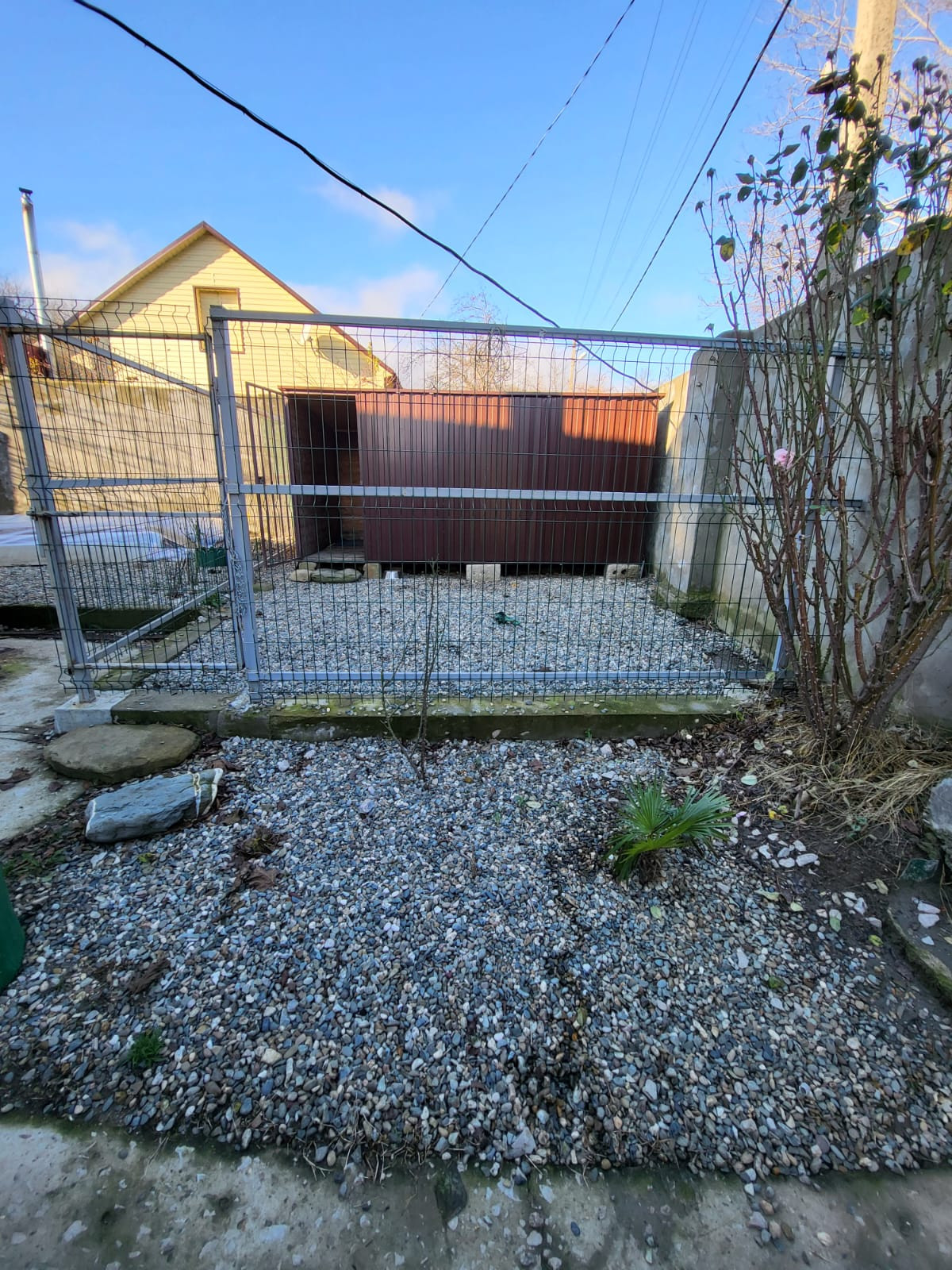 Земельный участок ровный, огорожен, выровнен и отсыпан щебнем. Возможен заезд на участок, парковка для авто, вольер для собаки. Имеются молодые плодовые деревья и декоративные кустарники.