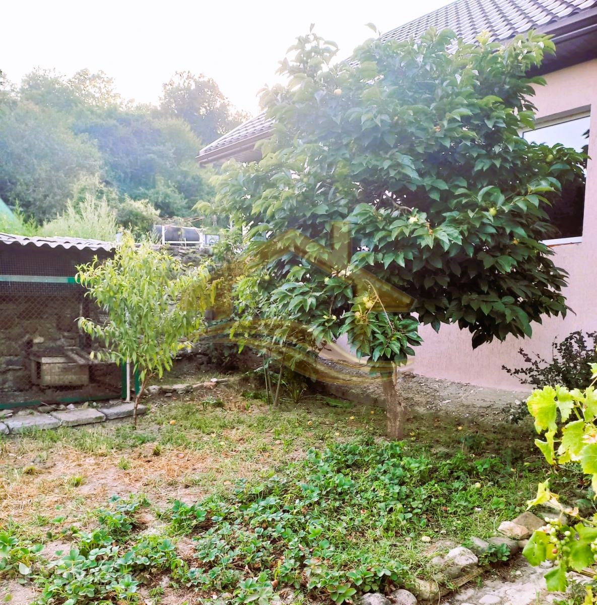 На участке растут плодовые деревья и кустарники; 2 сорта винограда.