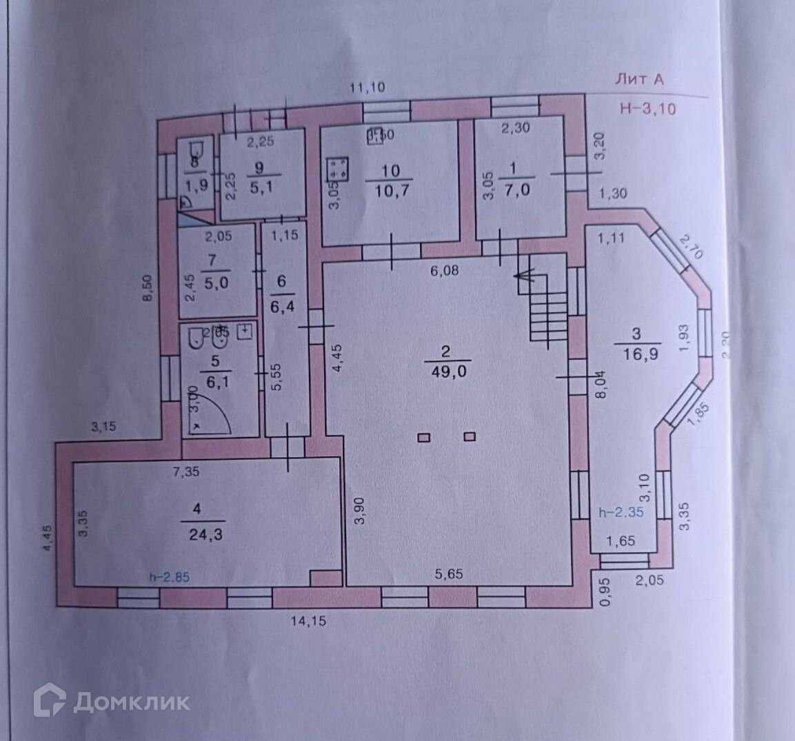* Просторные комнаты с высокими потолками (3 м)