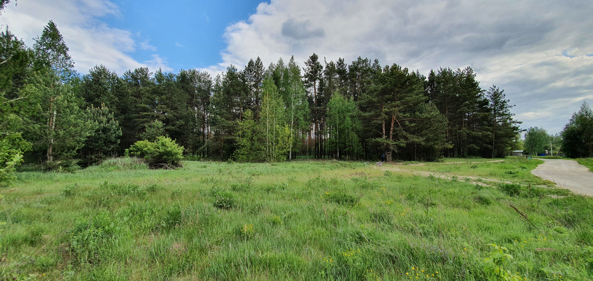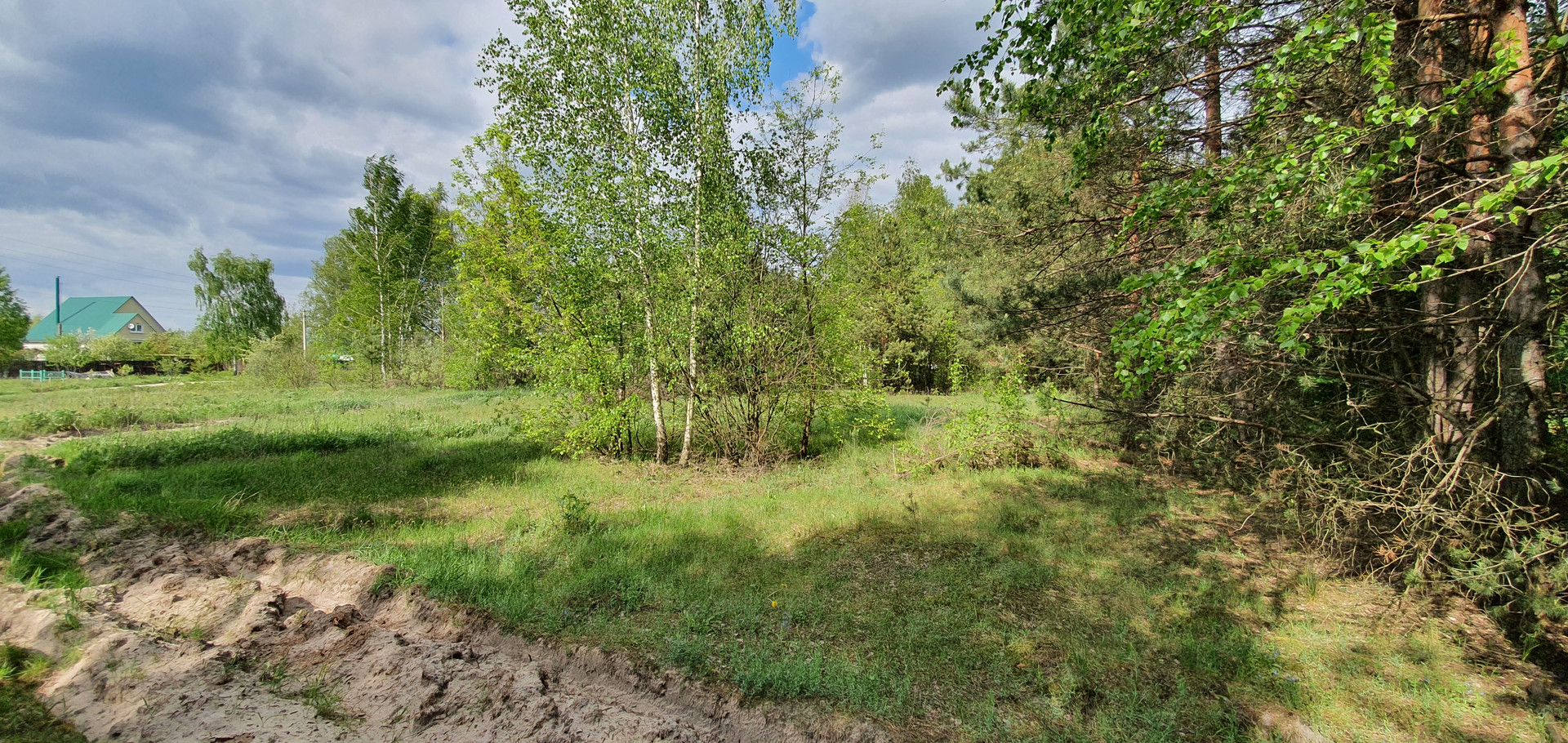 Вдали от центральной дороги, полная тишина. Участок на границе опушке леса. Сосны и ели растут прямо на задней части участка.
