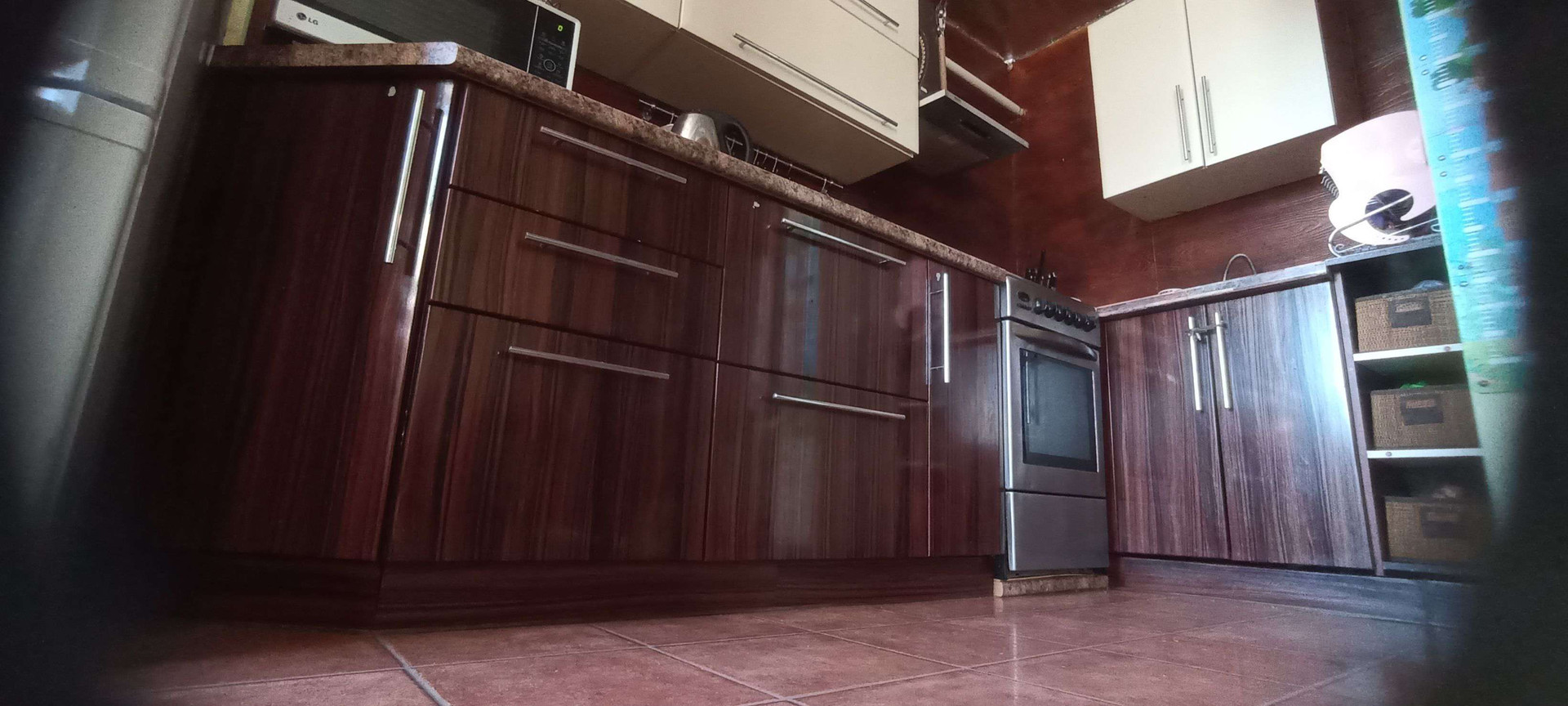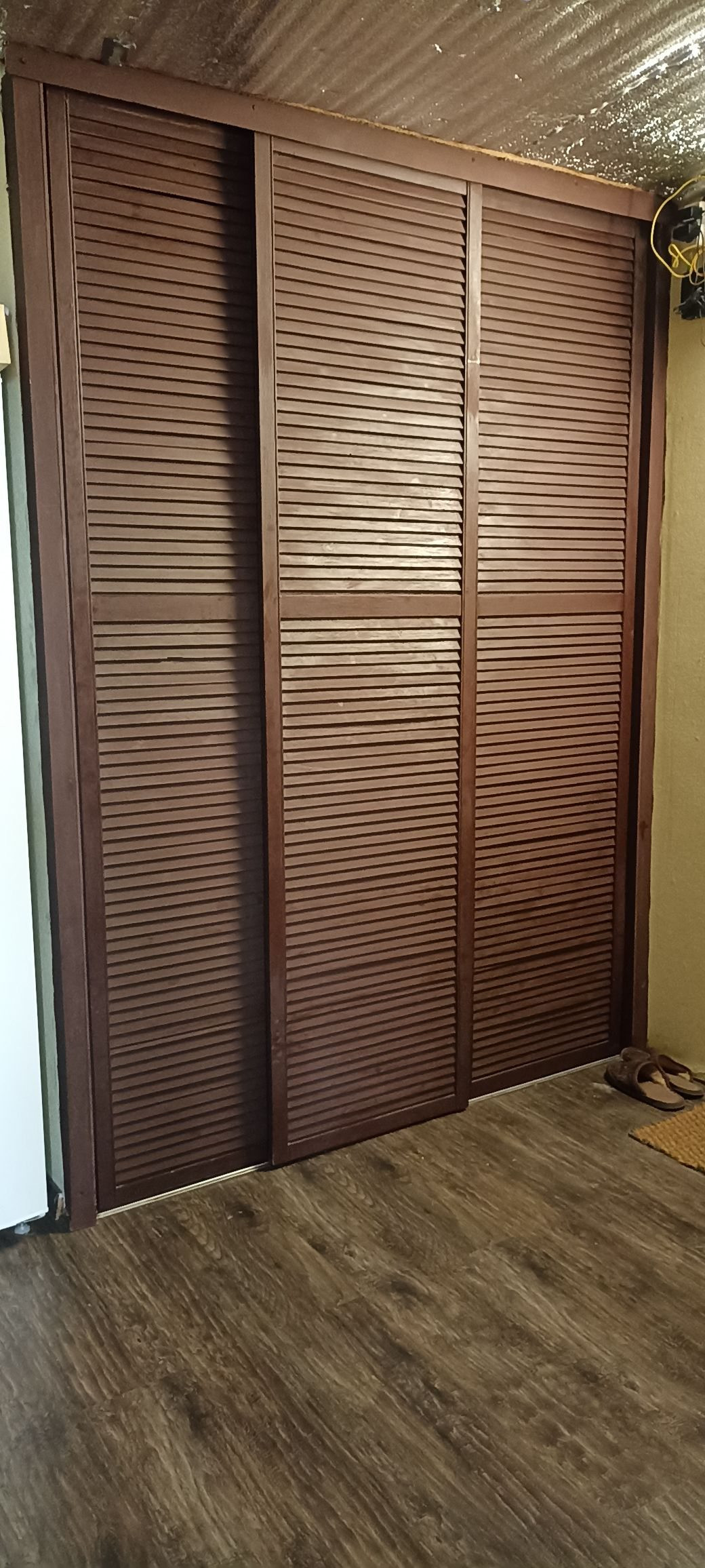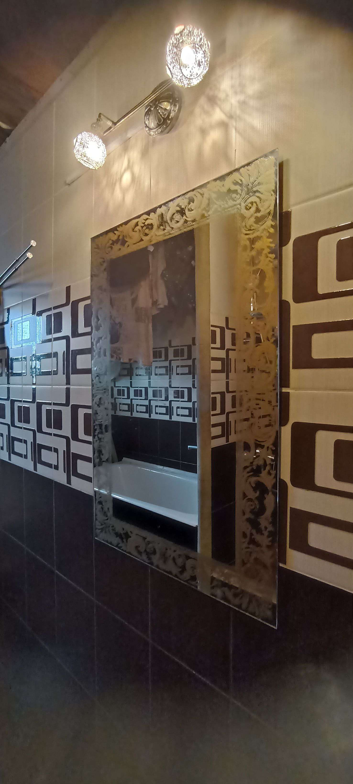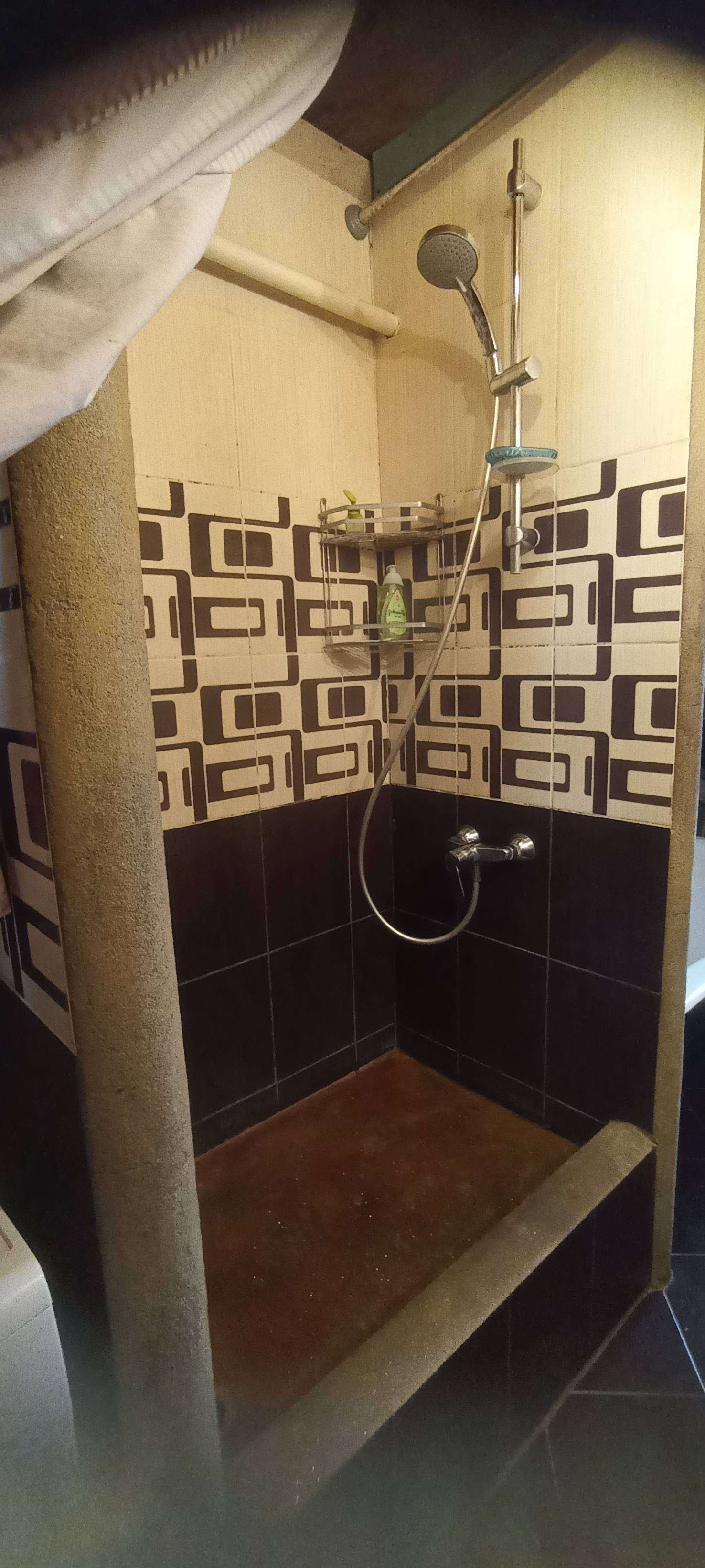 Первая квартира: гостиная-столовая 33м²,санузел совмещенный 8 м²(ванная, душевая, унитаз и место для стиральной машины, комната 15 м². На полу хорошего качества ламинат, на стенах обои под покраску, санузел весь выложен плиткой. Не сделаны потолки в связи с планируемой стройкой второго этажа. По плану часть потолка в гостиной убирается и открывается вид на второй этаж с перилами. В каждой половине дома есть подпол, со стеллажами для хранения овощей и консервации. В подарок останется часть мебели: встроенный шкаф, кровать двухспальная, барная стойка со стульями, диван, возможно кухонный гарнитур, письменный/компьютерный угловой стол и стул, шкаф - всё в одном стиле.