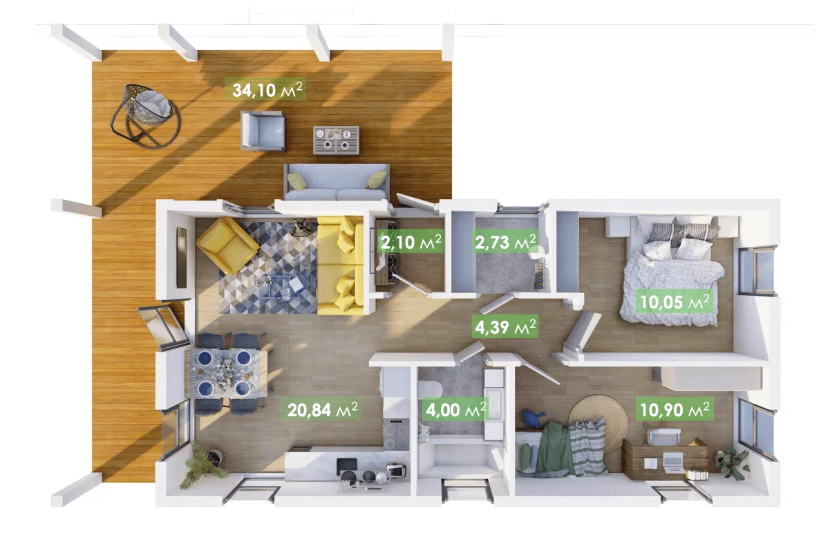 Площадь террасы: 34,10 m2