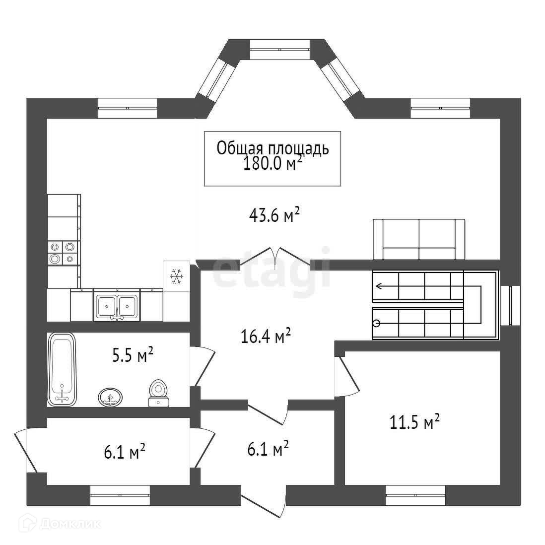 Общая площадь 180 м2