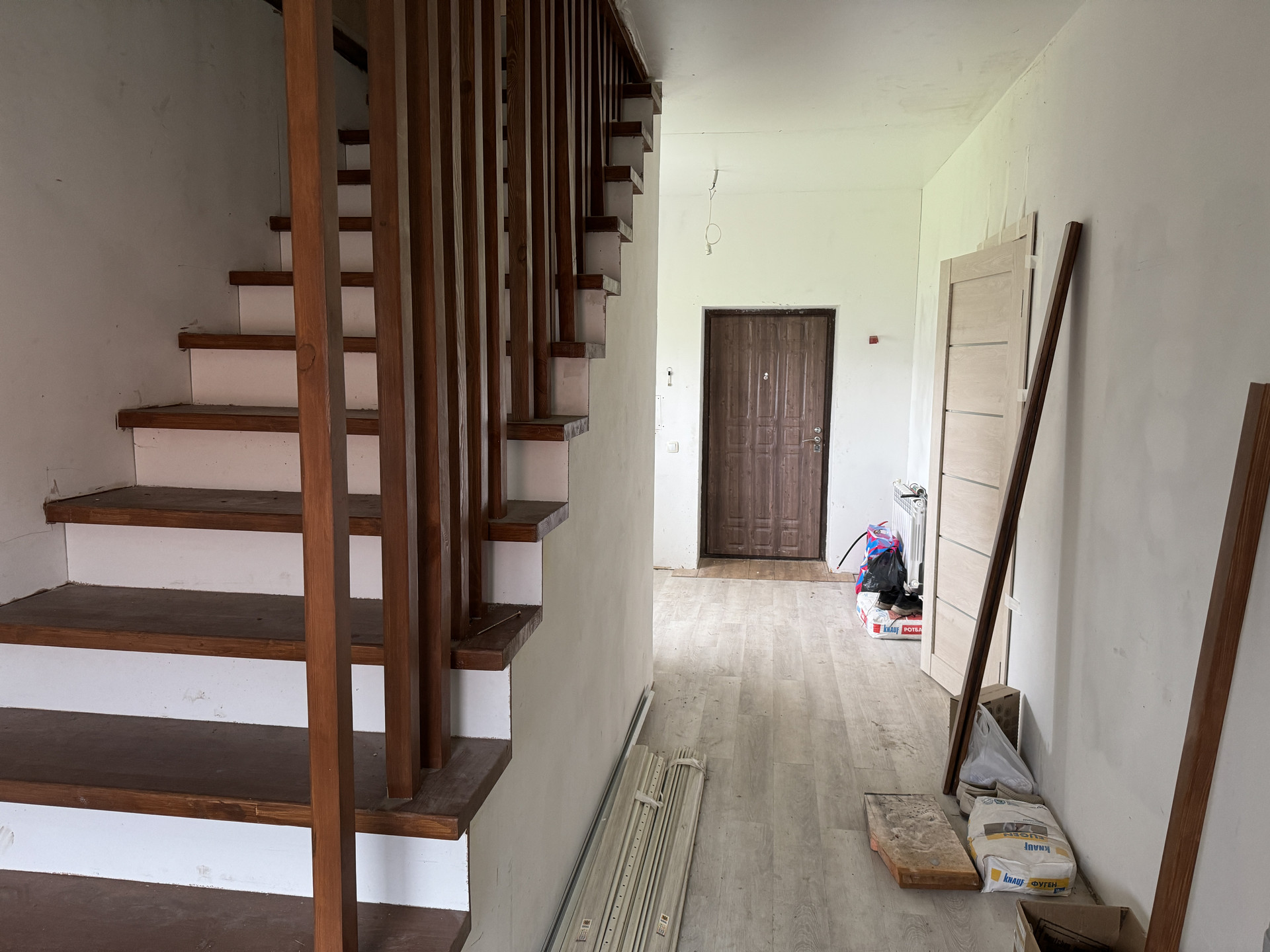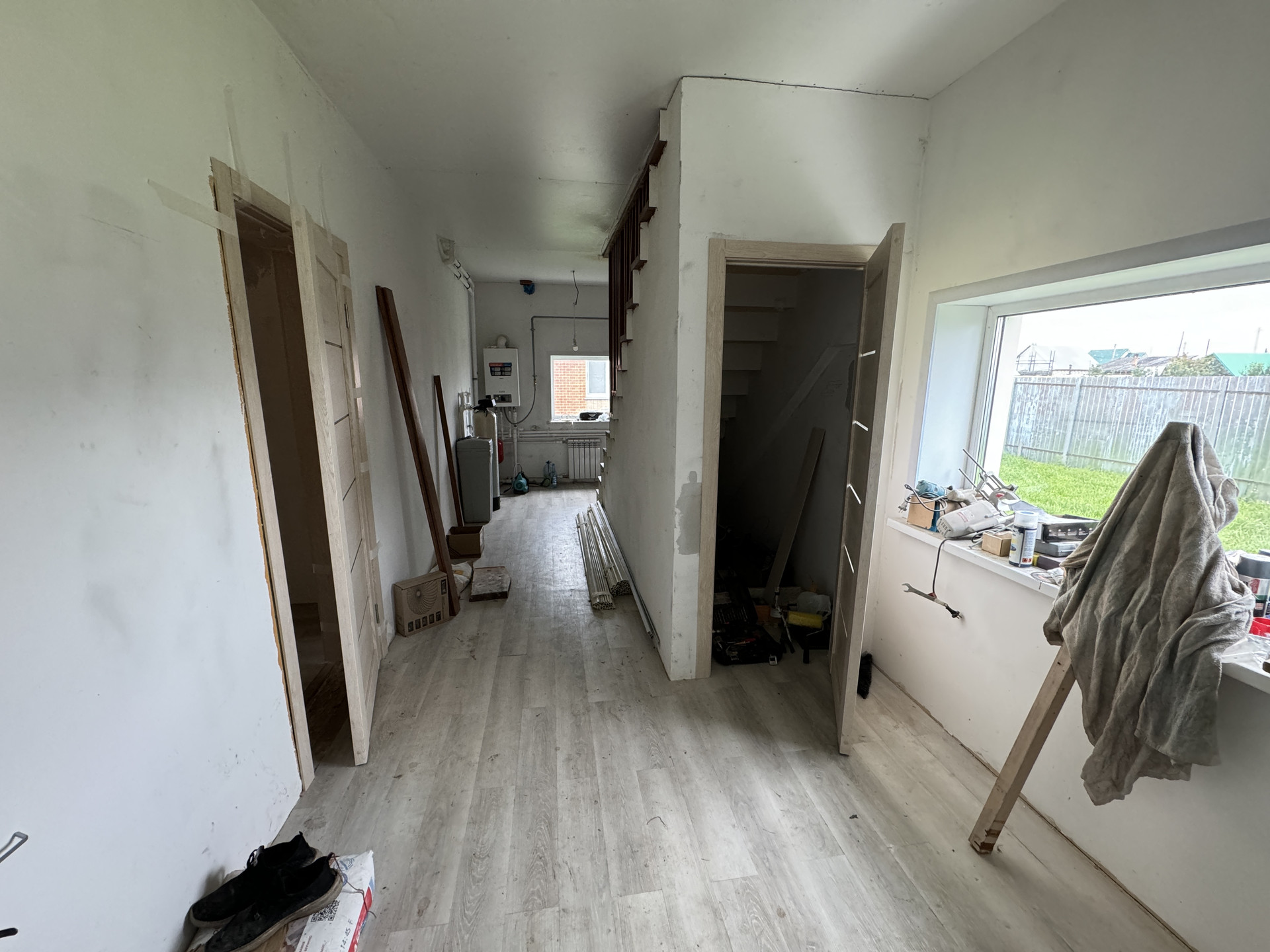 На 1 этаже, просторный коридор, зал, кухня, раздельный сан узел, добротная лестница, под лестницей оборудована кладовая.