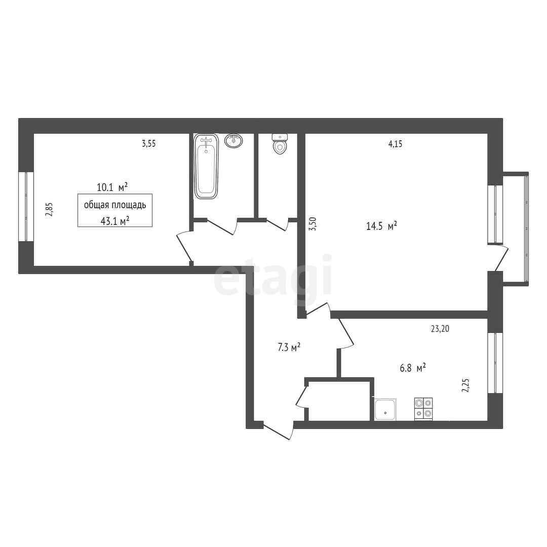 Общая площадь 43.1 м2