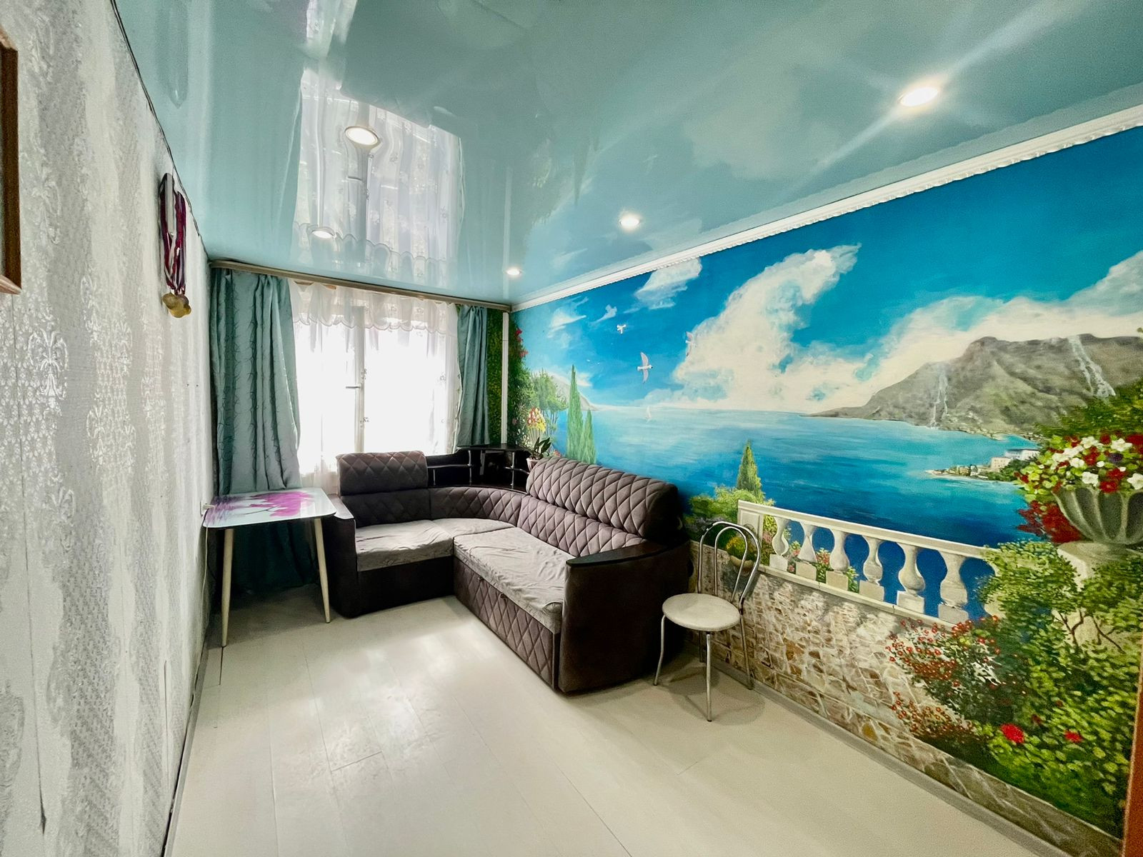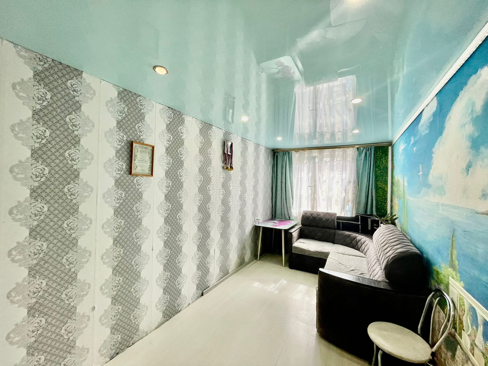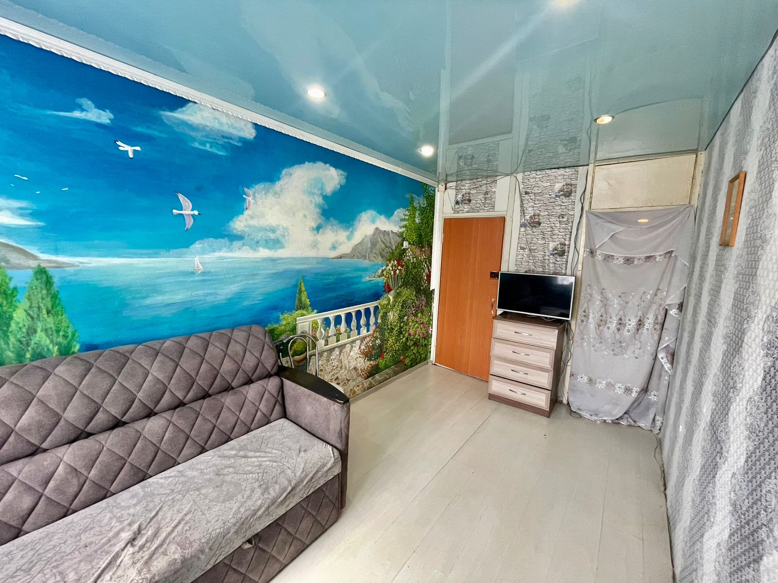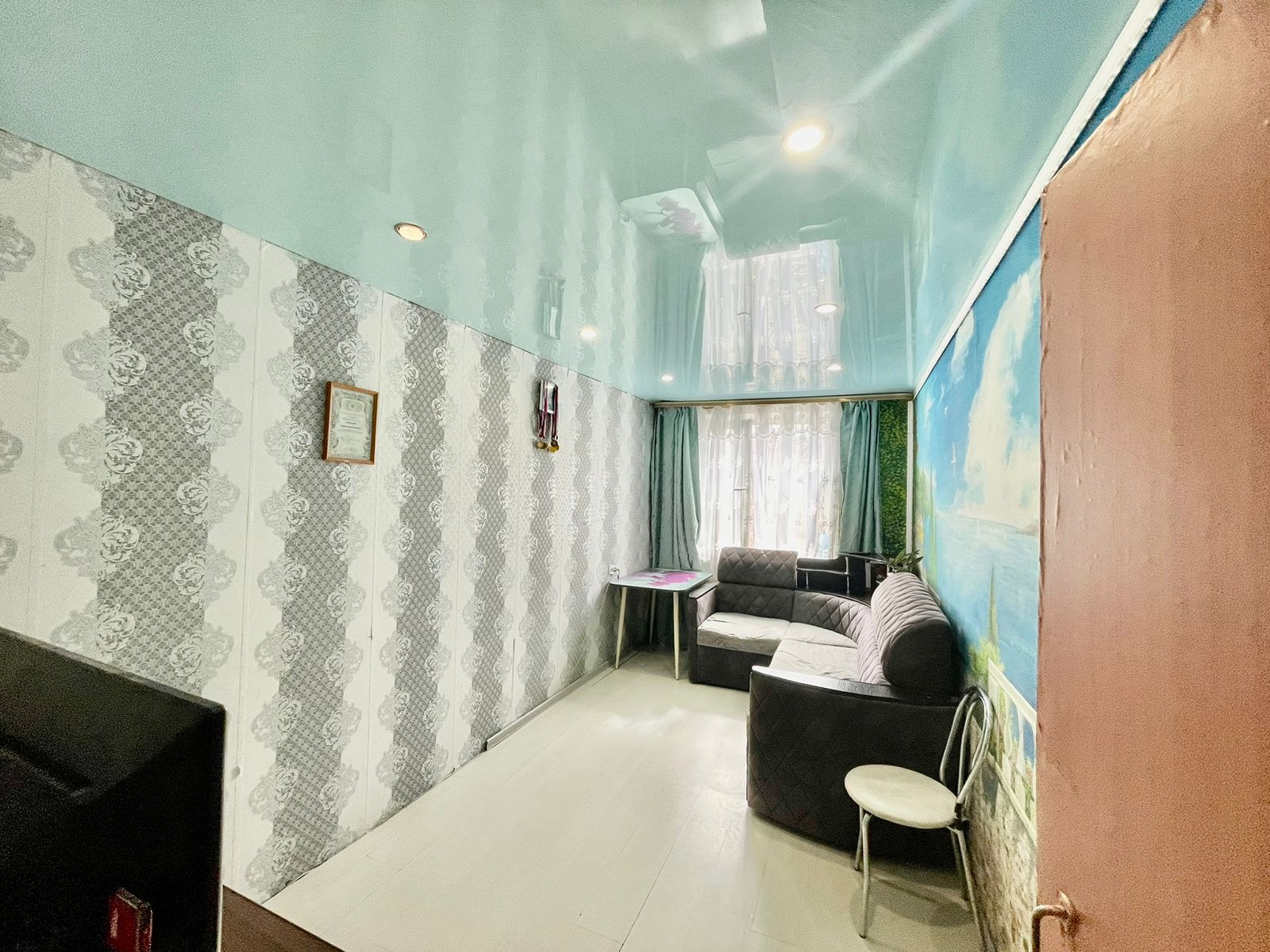 У нас объект с пластиковым окном, живописный рисунок на одной из стен, имеется небольшая гардеробная, один собственник, во владении более 5 лет.