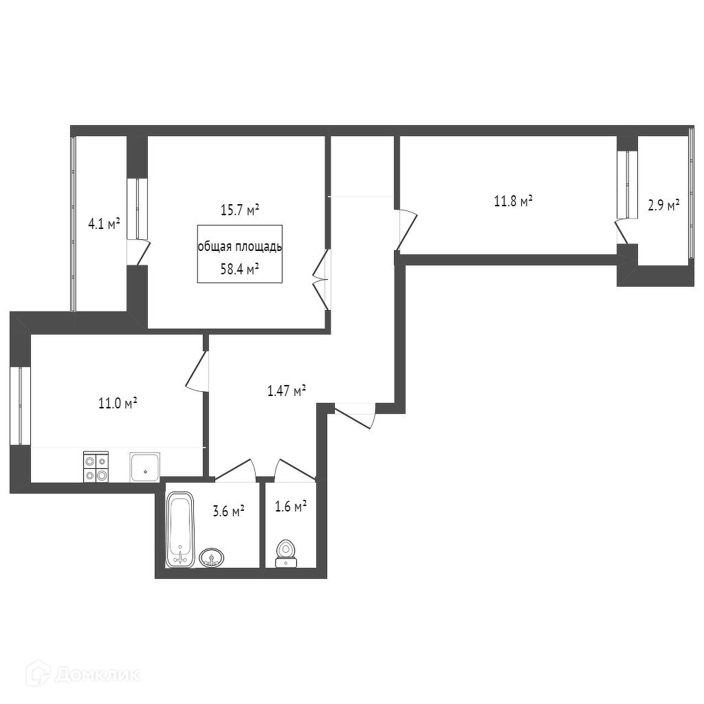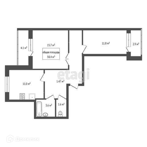 Общая площадь 58.4 м2