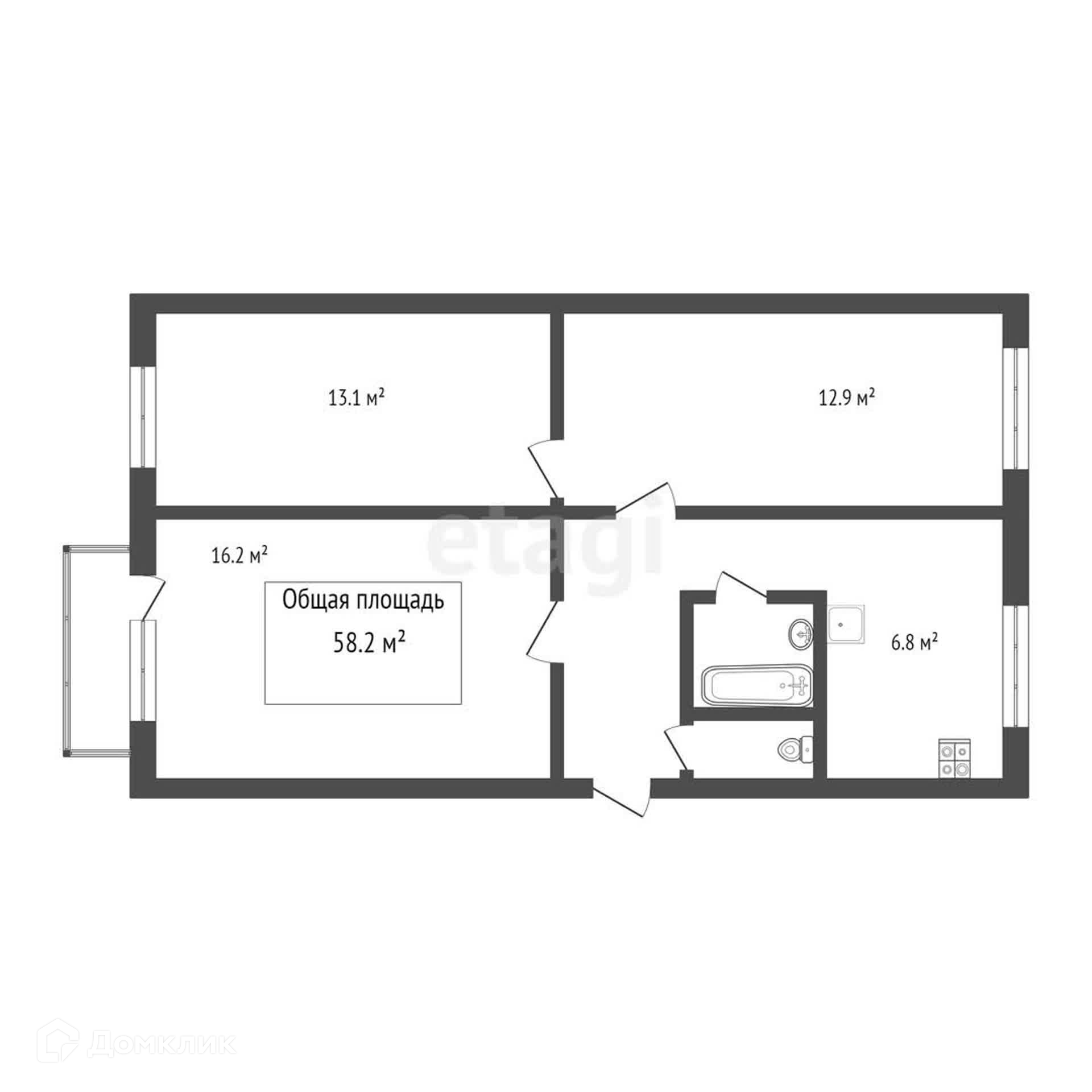 Общая площадь 58.2 м2
