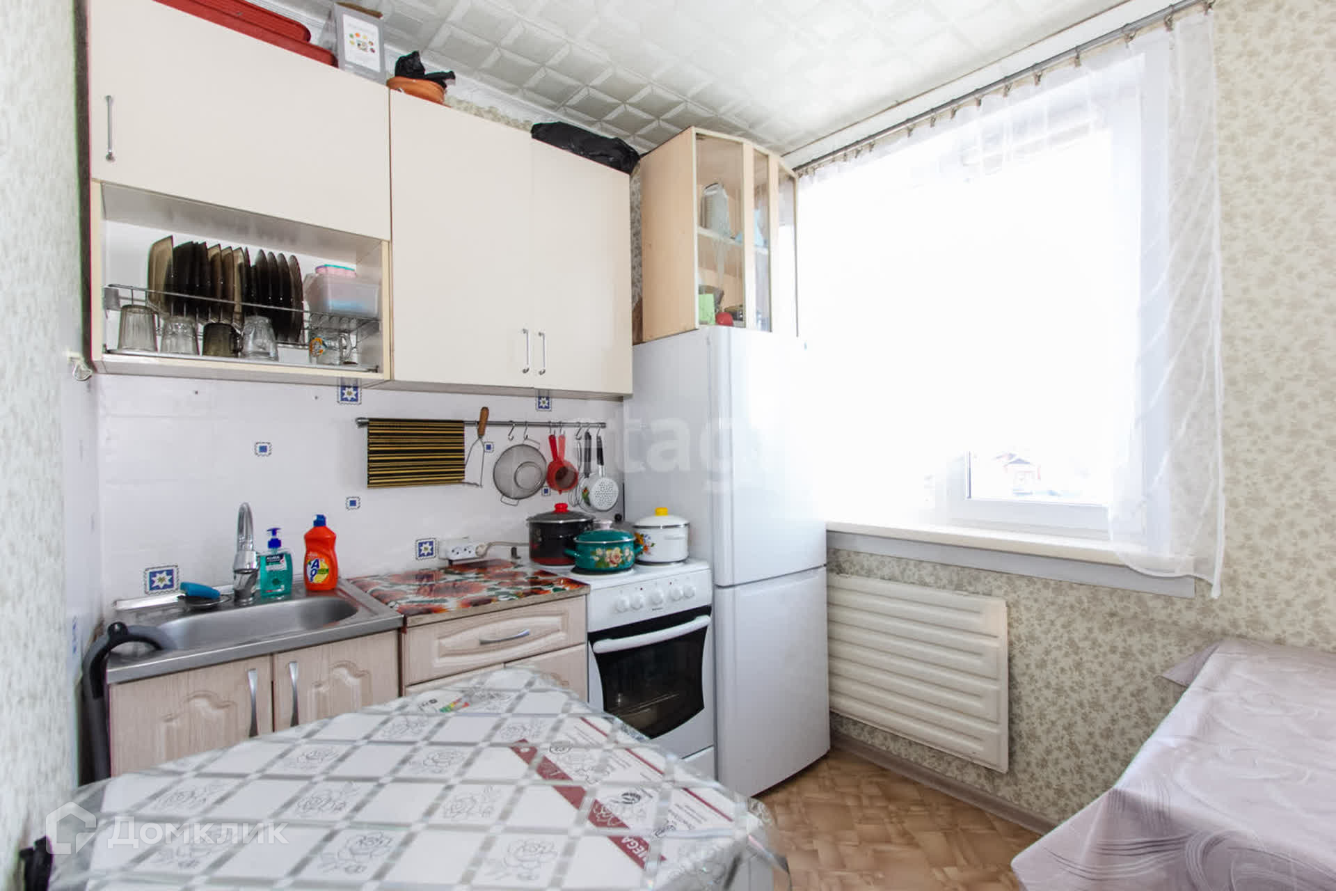 В квартире остается новым владельцам: кухонный гарнитур, плита, диван.
