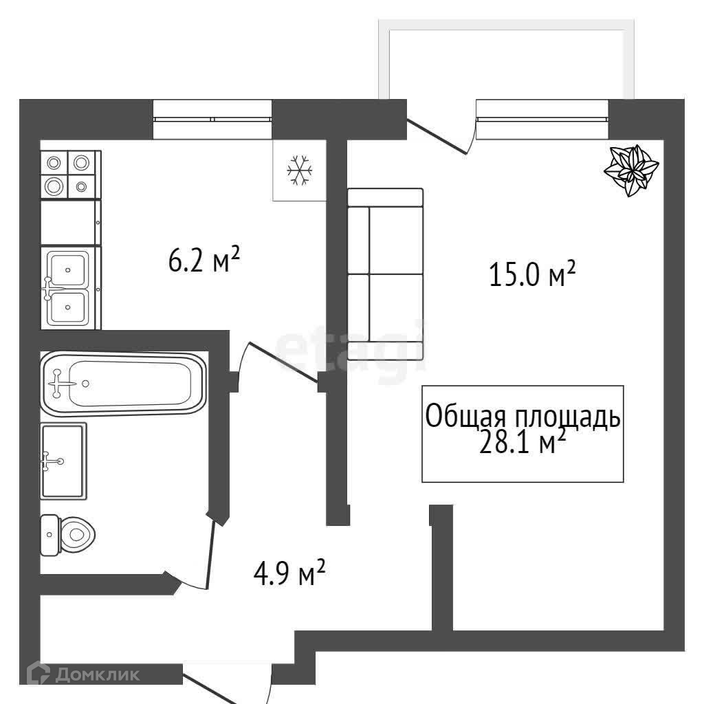 Общая площадь 28.1 м2