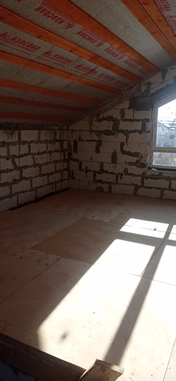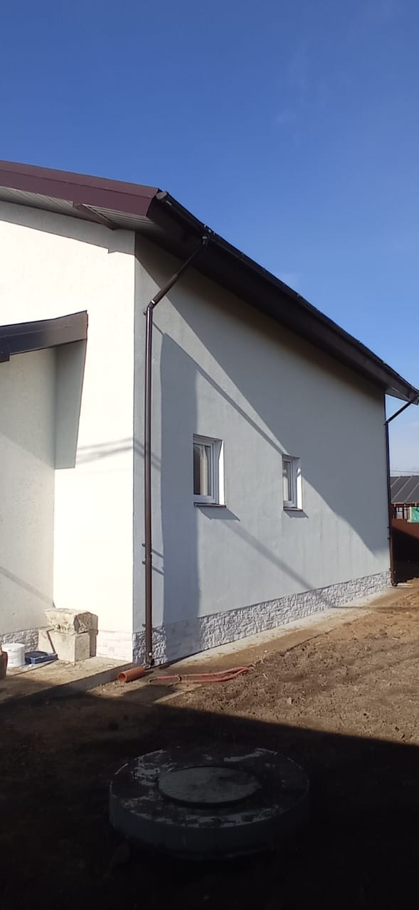Стены - газобетон 300мм+утепление+декоративная штукатурка "Короед".