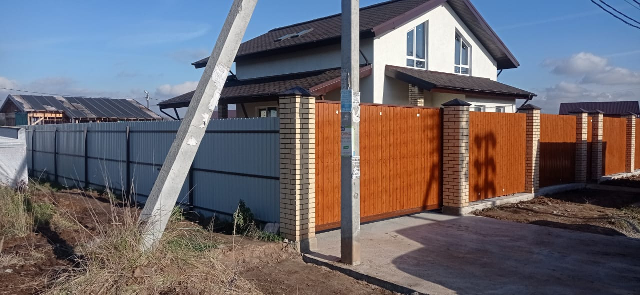 Красивый забор по фасаду. Периметр также огорожен забором.