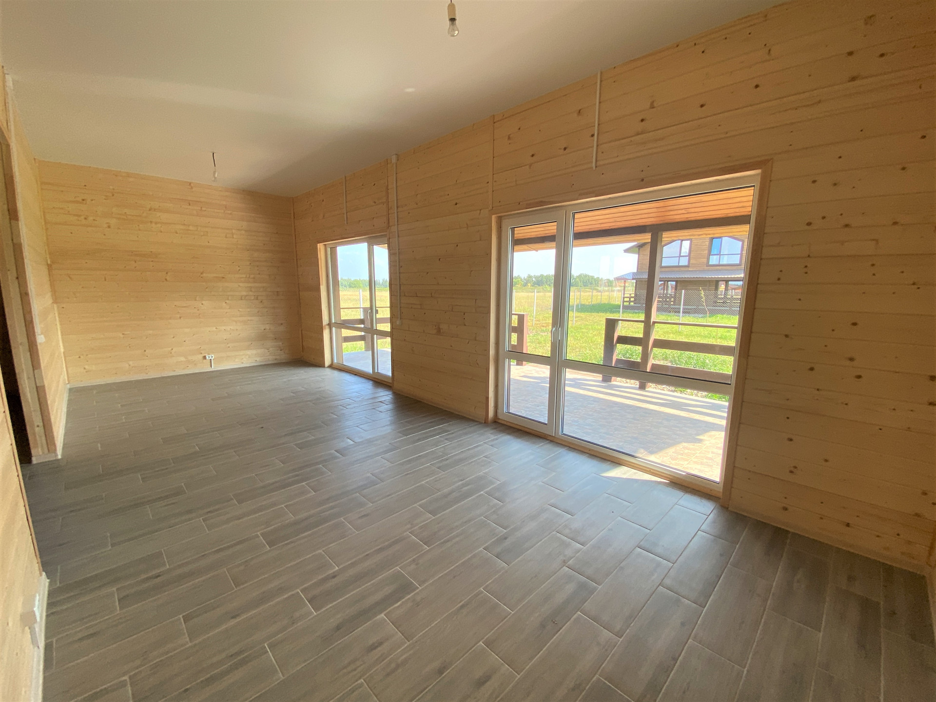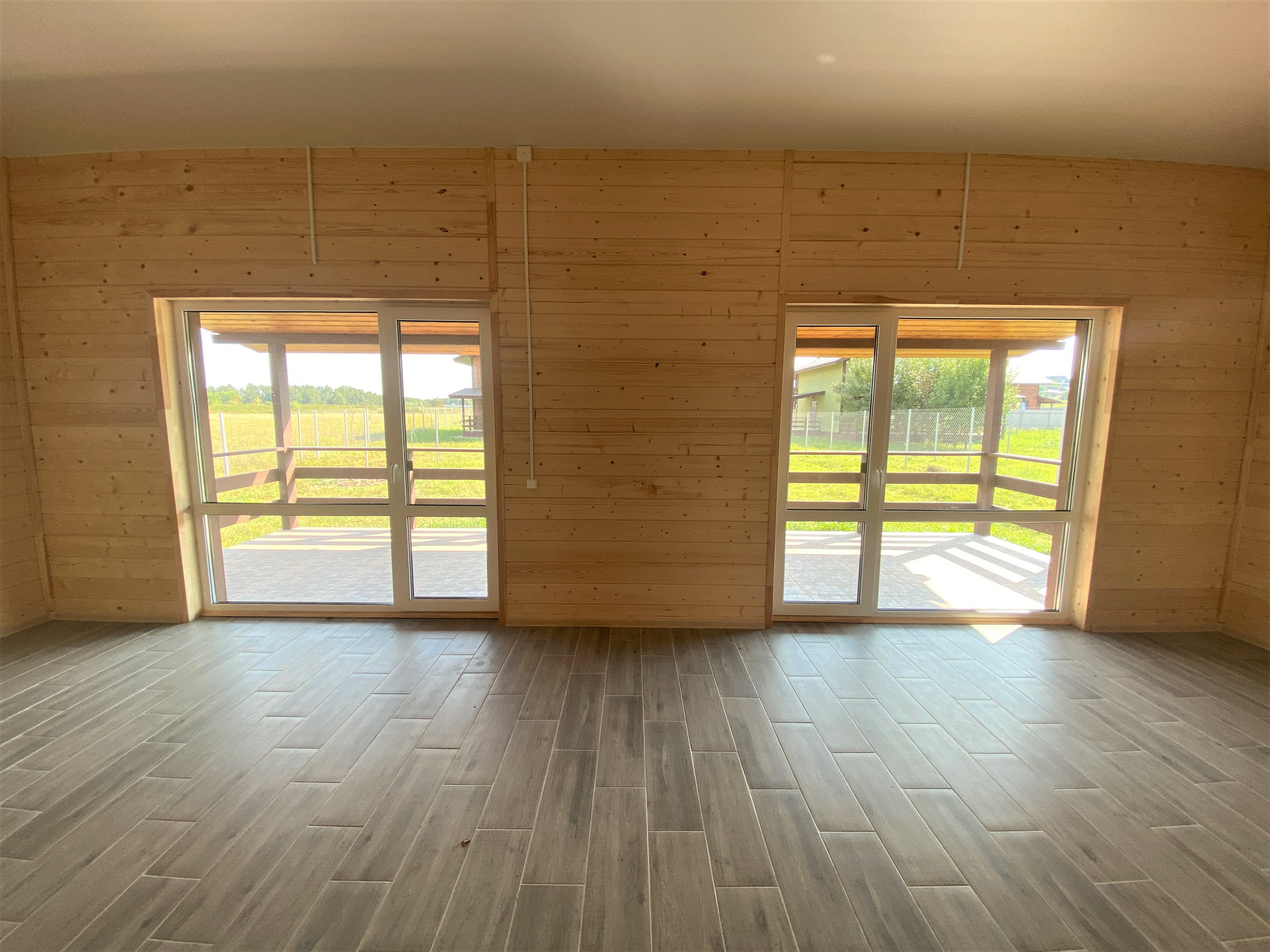 — Смонтированы натяжные потолки на первом этаже;