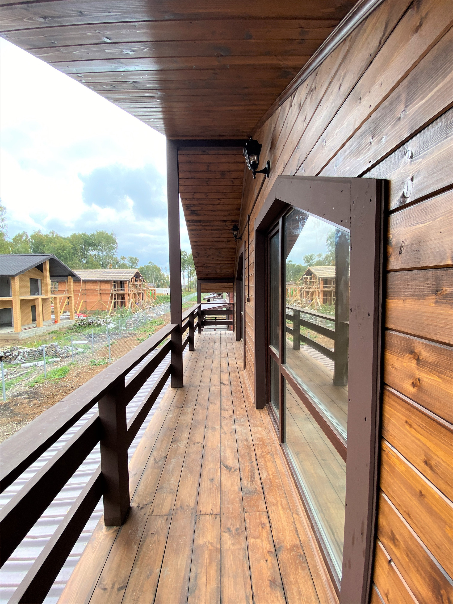 — Смонтирован натяжные потолки на первом этаже;