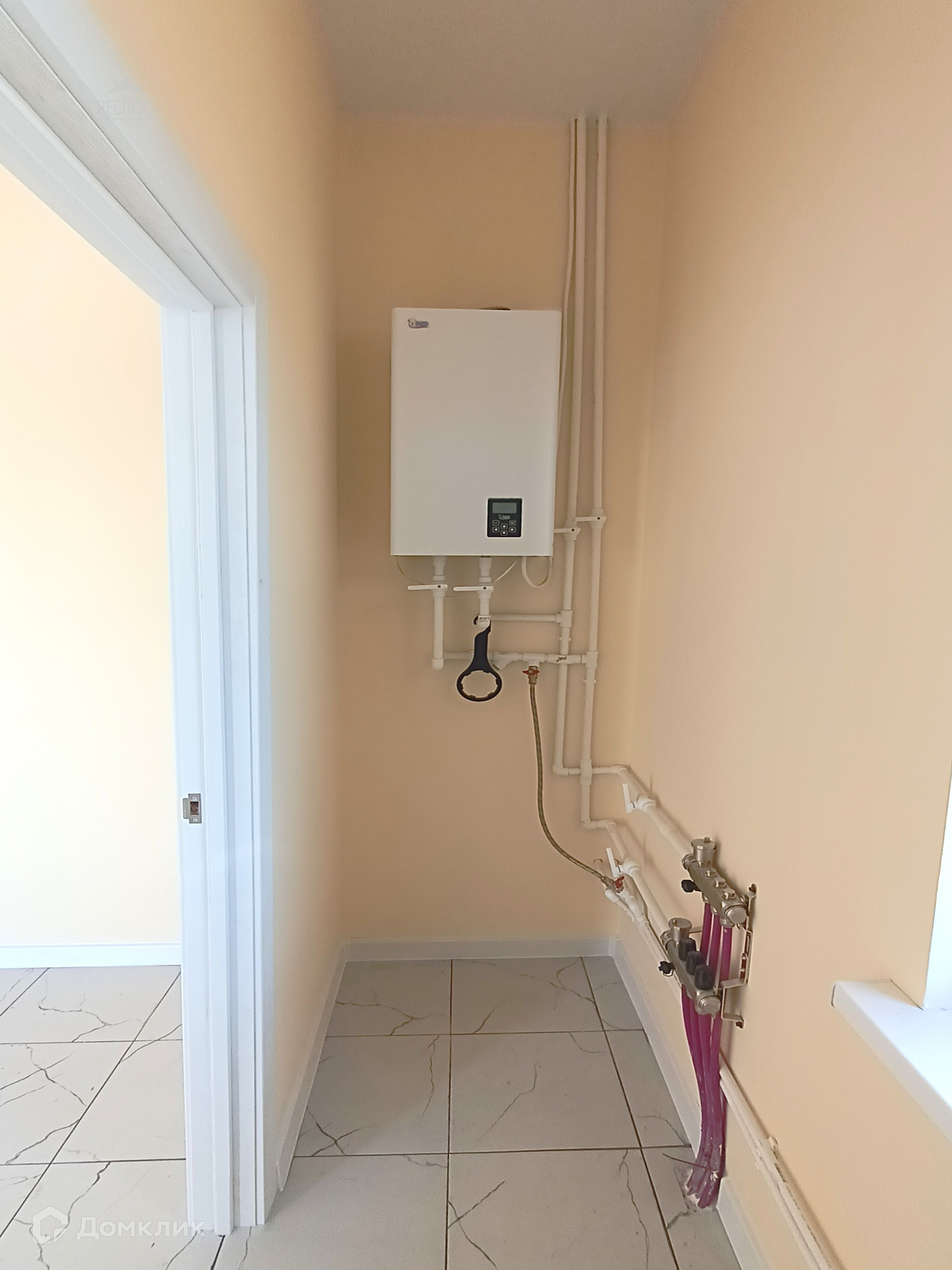 Фундамент – плита. Стена - блок+утеплитель+кирпич. На  полу: стяжка и плитка, по всему дому водяной тёплый пол.  Окна - пластиковые, двойной стеклопакет. Входная дверь - металлическая; крыша - металлочерепица. Дом полностью готов к проживанию.