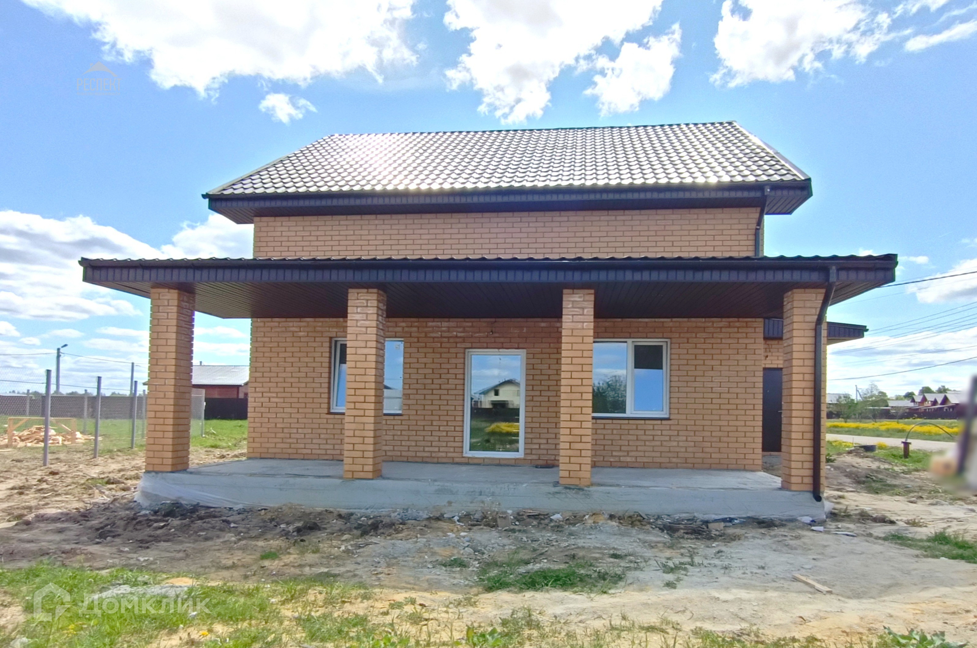 Технические характеристики: Фундамент ленточный армированный. Электричество 15 кВт, три фазы: разведено по дому. Отопление от электрокотла, батареи разведены. На первом этаже стяжка и частично водяной тёплый пол. Горячая и холодная вода. Водоснабжение от своей скважины. Канализация – кольца. Окна пластиковые. Крыша - металлочерепица.