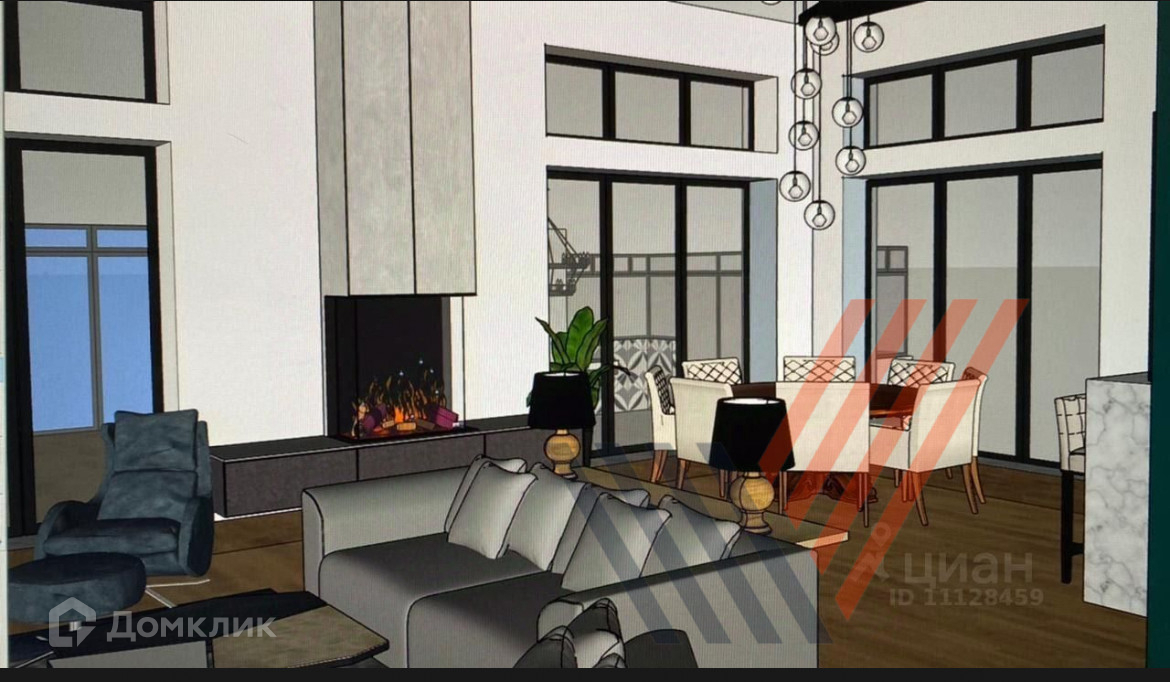 Очень светлый просторный дом с большими окнами в пол.