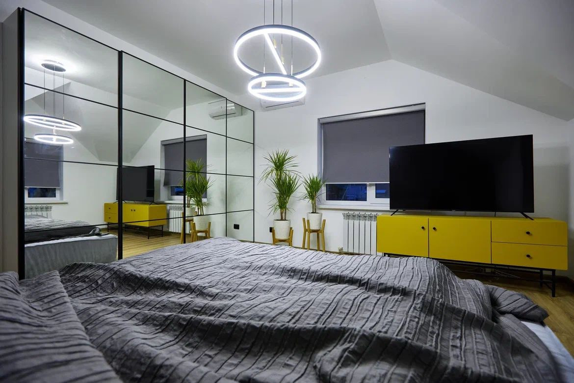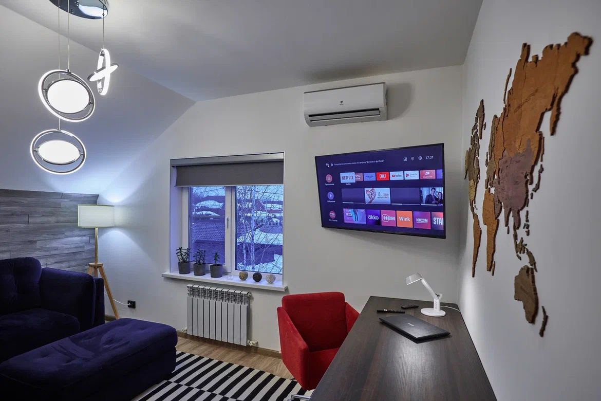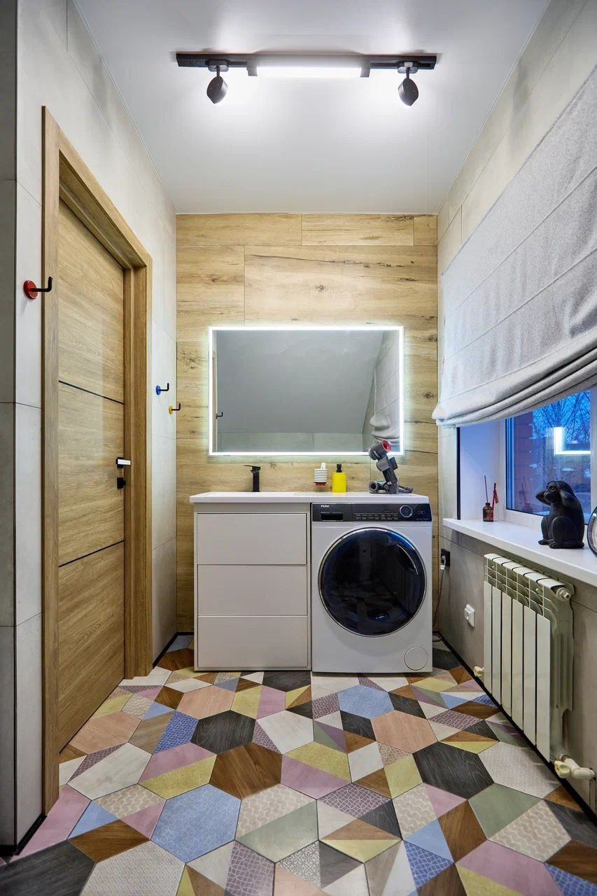 Установлена входная дверь с терморазрывом, инверторные кондиционеры, теплые полы на первом этаже, в том числе на террасе и в санузле второго этажа. Имеются две стиральные машины с функцией сушки: в бойлере на первом этаже и в санузле на втором этаже. На кухне установлена посудомоечная машина. Лестница из металлокаркаса с цельноламельным дубом. Вся техника марки Haier.