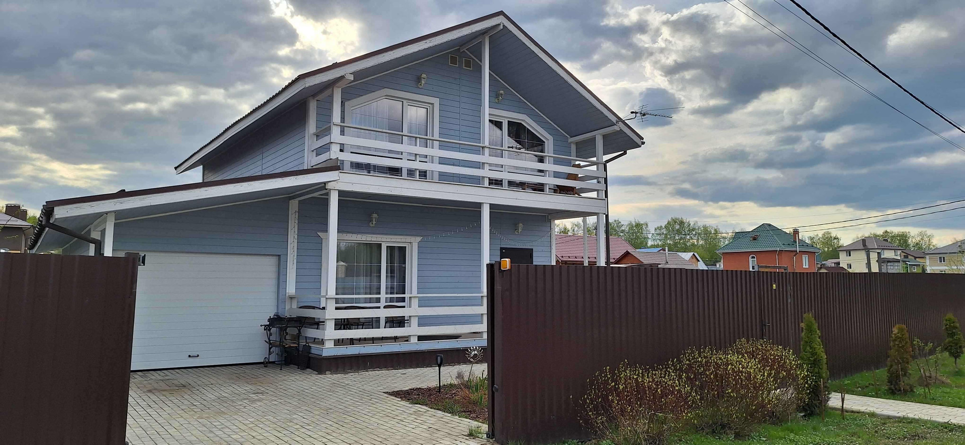 Дом построен на ленточном , первый этаж из бруса, второй этаж каркасный, веранда и балкон,гараж и котельная отдельно,пристроены к дому, откатные автоматические ворота, на участке есть теплица, грядки,плодовые деревья, детская площадка. Газ по границе участка. Количество комнат на втором этаже изолированных 3 шт., одна из комнат с выходом на балкон, плюс комната гостинная с выходом на балкон, на первом этаже гостинная совмещенная с кухней и выходом на веранду, высота потолка 3 метра на первом этаже, санузел отдельный и ванная комната, прихожая, гардеробная. Парковочное место на участке под две машины, плитка. До города Бронницы на машине 10 мин, доставку продуктов до дома можно заказывать, также в поселке есть магазин, валберис, магазин Верный, в поселке есть озеро, можно дойти или доехать до Москва реки. До автобусной остановки 10 мин пешком.