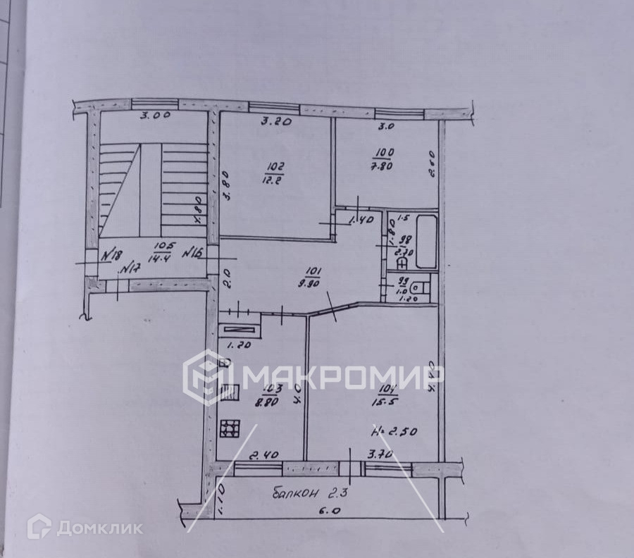 Высота потолков 2.5 м