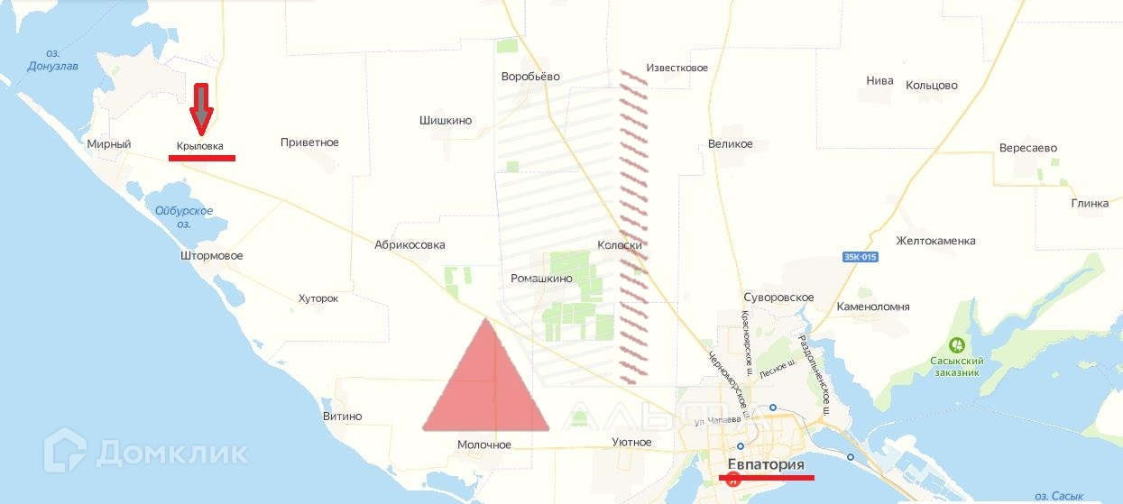 Расстояние до моря 4 км. До Евпатории 20 км.