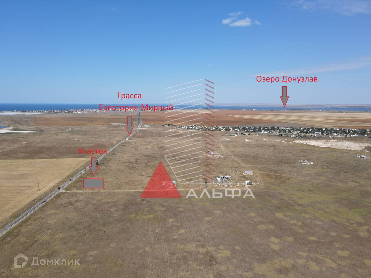 Участок расположен на первой линии от Автотрассы Евпатория-Мирный с придомовой территорией.