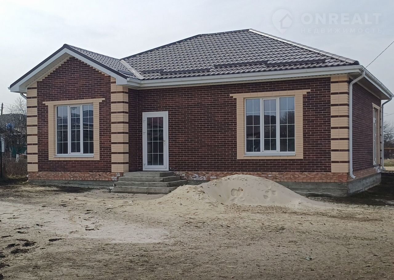 Продам новый кирпичный дом,от лутшего застройщика.построен с соблюдением всех норм из качественных материалов.Дом очень тёплый,будет сделана чистовая отделка стен - штукатурка,шпатлёвка,на полу чистовая стяжка с монтированным тёплым полом,проведена проводка под розетки,выключатели,телевидение,во всех комнатах под сплиты,сан техника разведена в стенах под воду,отопление и слив,дерево на крыше все обработано,крыша металлочерепица,грамотная планировка -три просторные спальни,большая кухня-гостинная, сан узел,коридор. Установлена система отопления-котёл на горячую воду и отопление,радиаторы,рамка управления на теплые полы,кухня с выходом на зону отдыха!