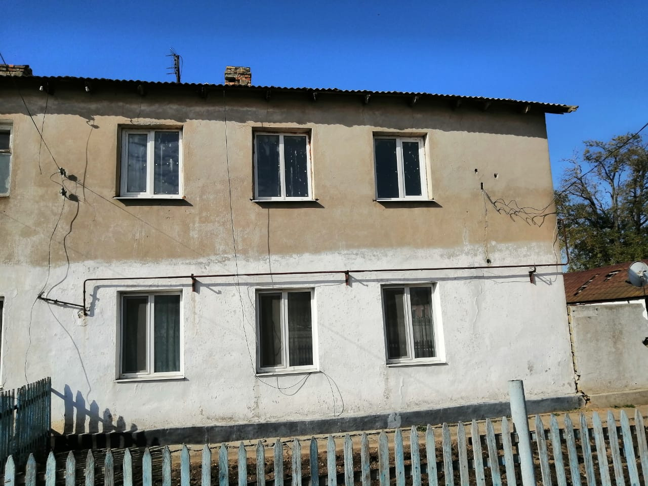 Квартира требует ремонта, газ, электричество подведены. Вода на улице. Двор, огород - муниципальная территория, принадлежат селу, используются жильцами по договорённости. 1 собственник, никто не прописан