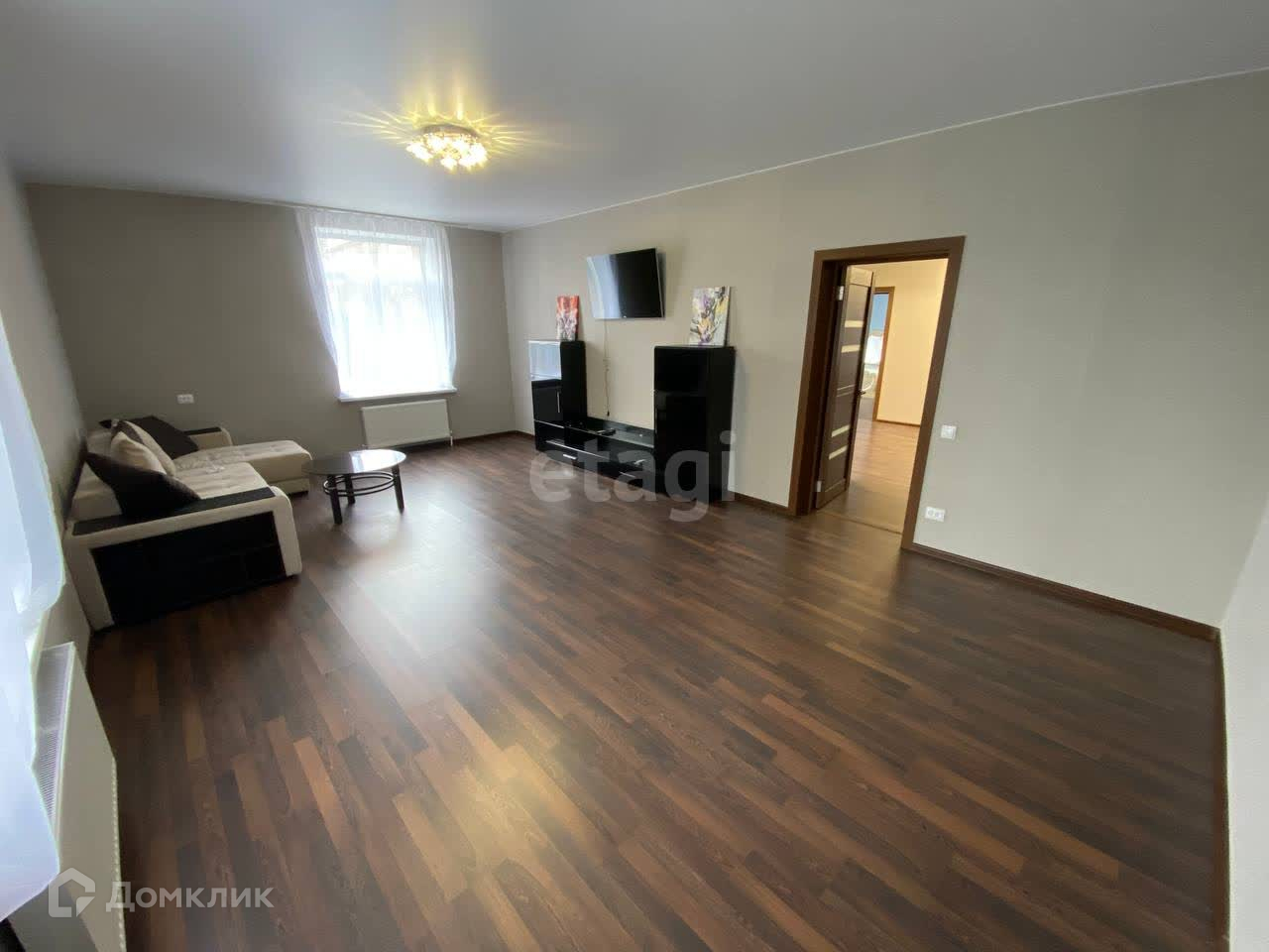 Трёхкомнатная квартира в одноэтажном доме с внушительной общей площадью 93кв/м, жилой - 62кв/м, просторной кухней-гостинной 21кв/м. Квартира на земле с