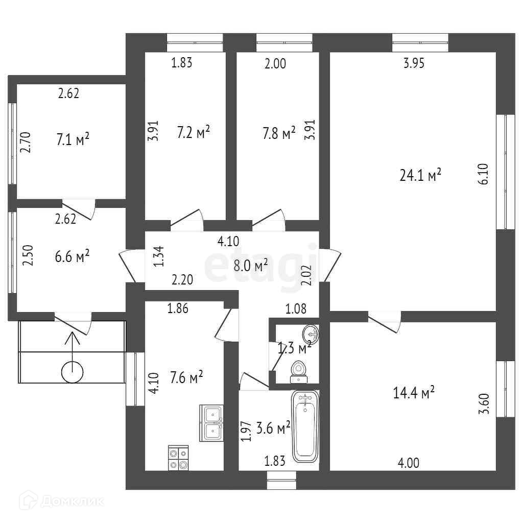 Дом со свежим ремонтом площадью 84 м2, состоит из 3-х просторных жилых комнат:24/15/14 м2, кухни - 8 м2, раздельного санузла, коридора и просторной светлой веранды- 15 м2.