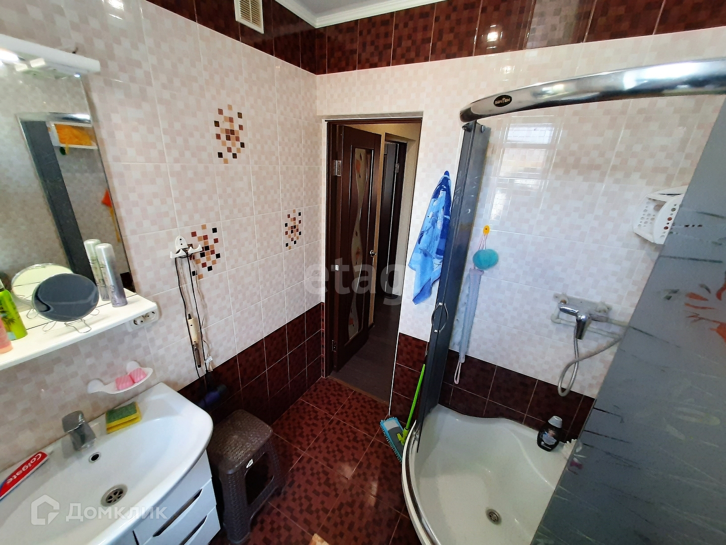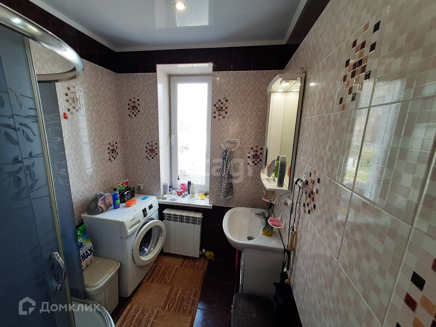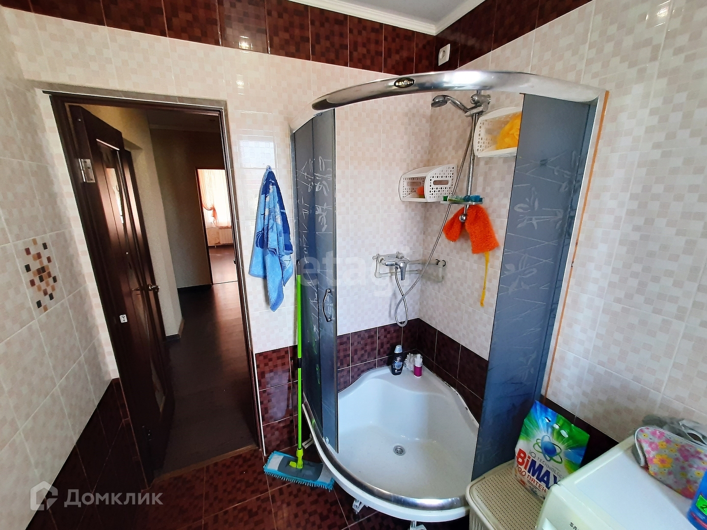 * санузел - керамическая плитка до потолка, новая сантехника