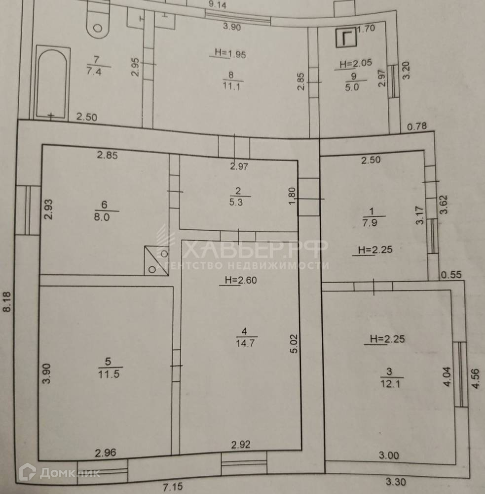 8 кв.м, 11,5 кв.м, 14,7 кв.м, большая кухня 11,1 кв.м, санузел 7,4 кв.м, гардеробная, котельная, коридор, прихожая, веранда.