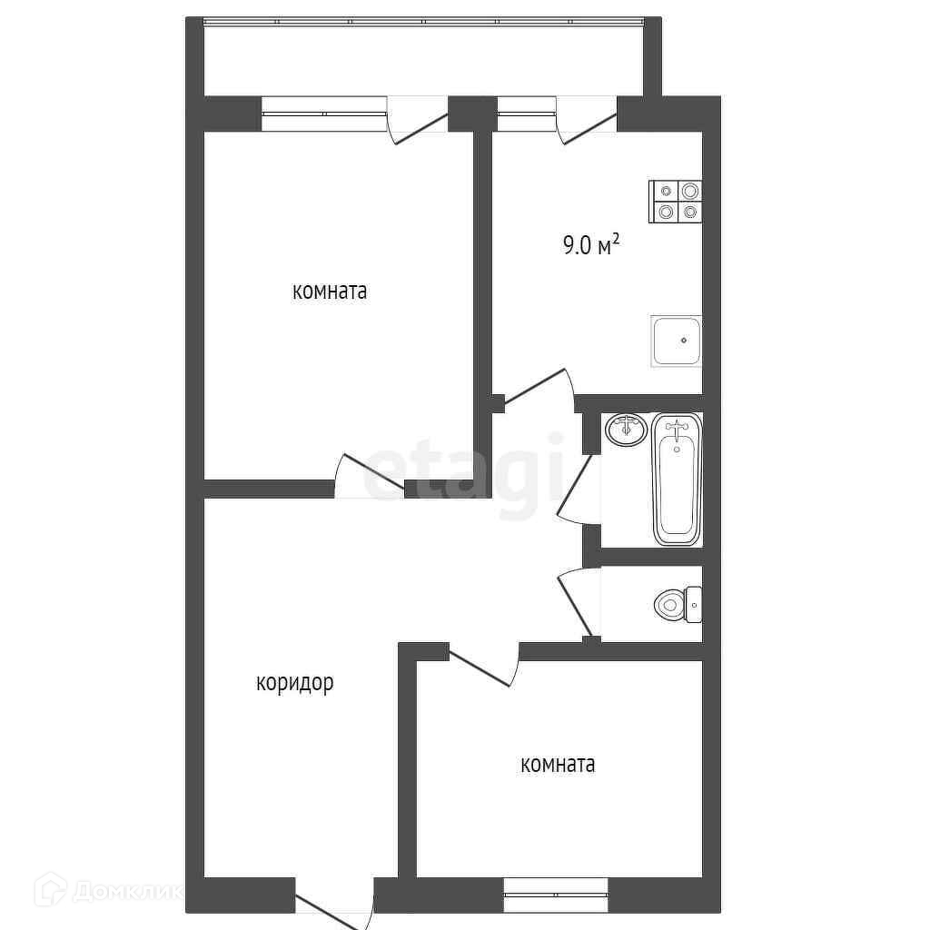 Площадь квартиры 54 кв. м; две раздельные комнаты: 20 и 16 кв. м., большая кухня 11 кв. м с выходом на балкон. Раздельный сан. узел.