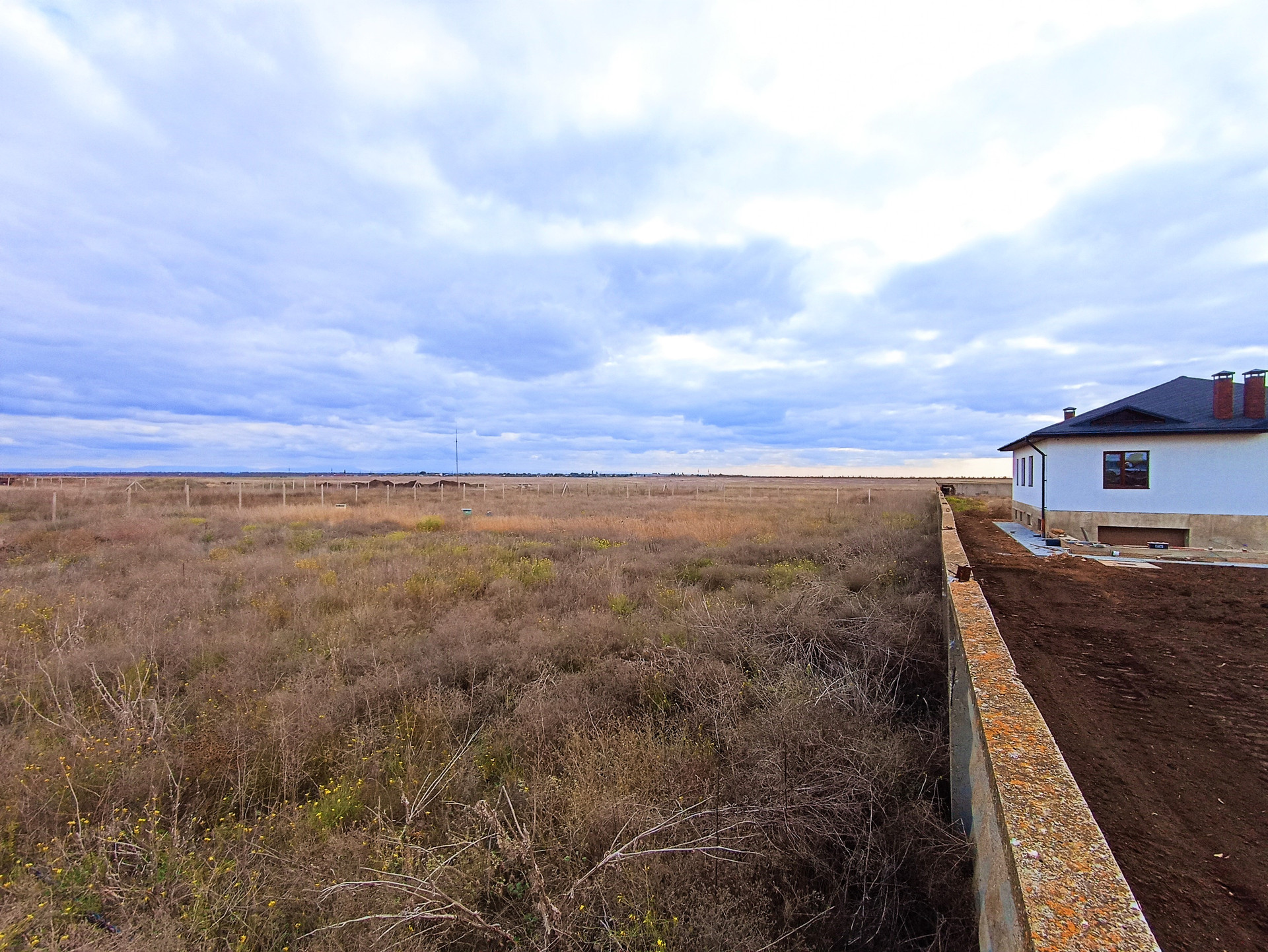 Местоположение- асфальтированная дорога, улица застраивается. Справа построились соседи.