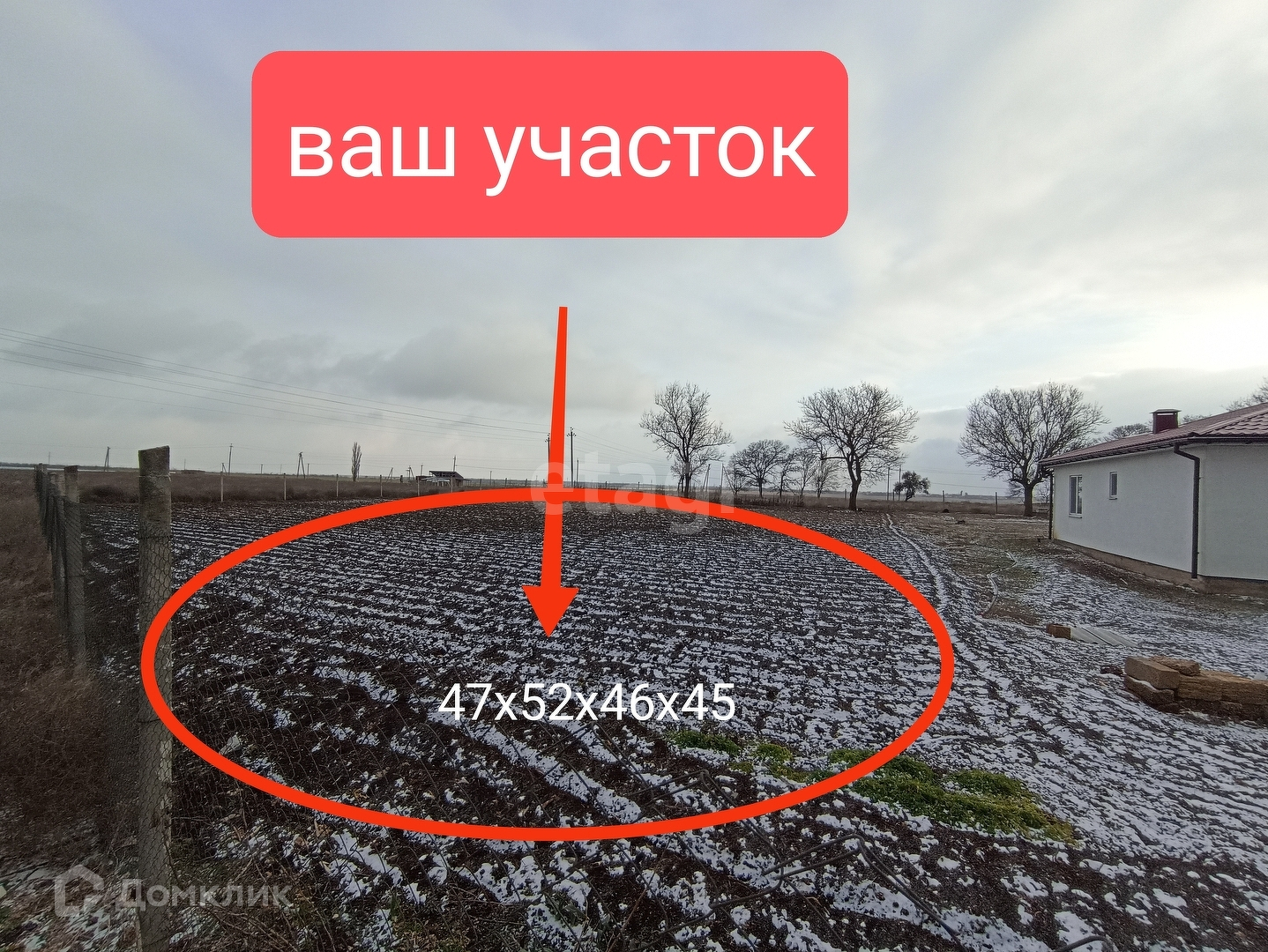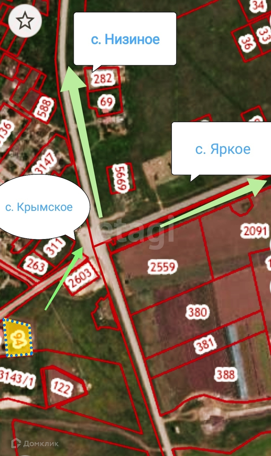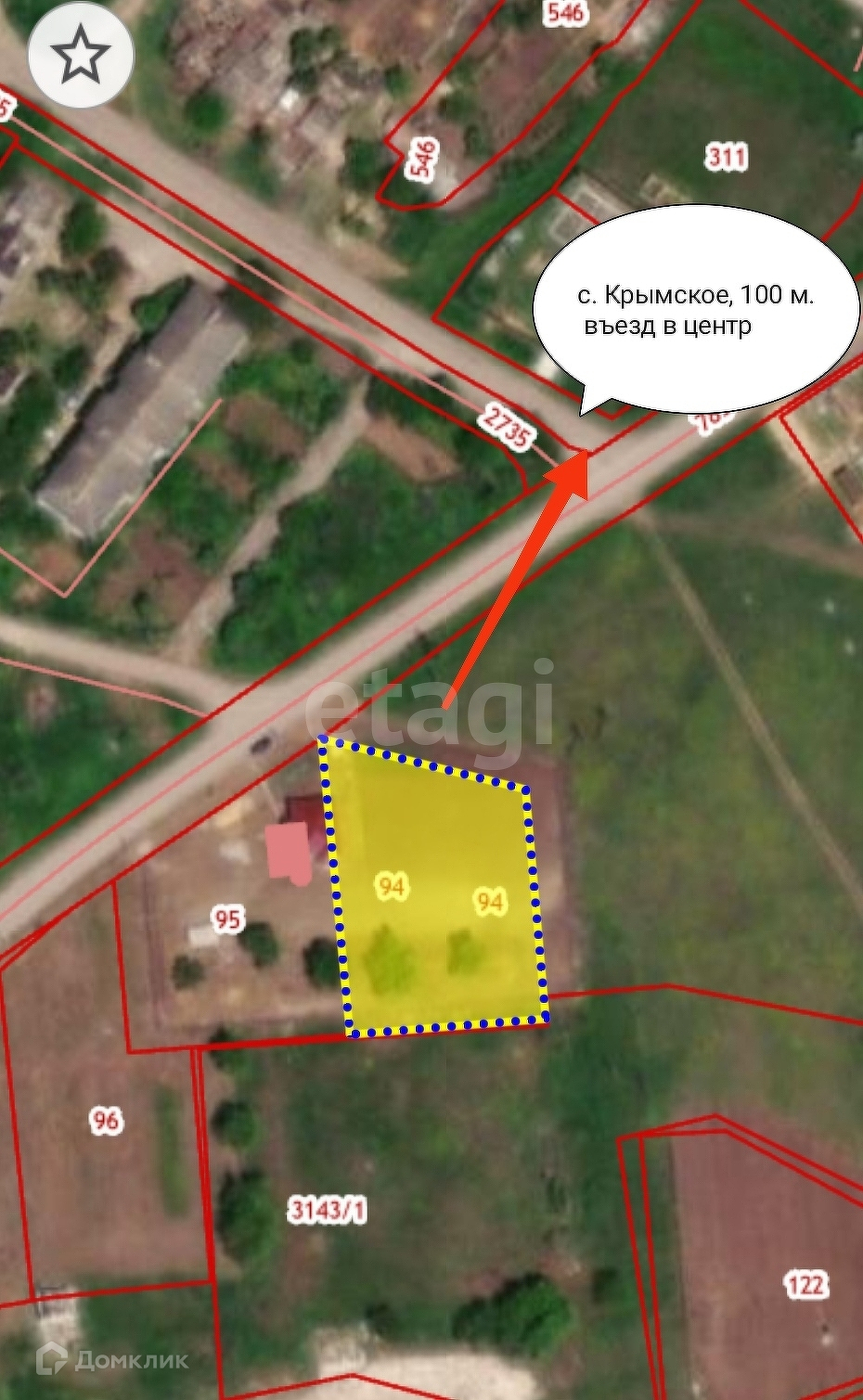 Участок расположен в 300м от основной трассы при въезде в село Крымское.
